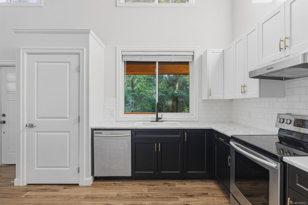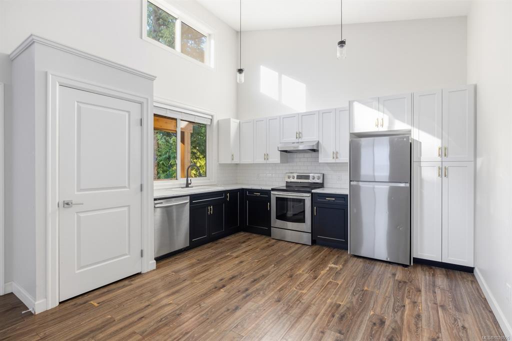 Cute carriage home on a ½ acre lot in sought after Shawnigan Lake. Zoning permits construction of a detached primary residence, offering an excellent opportunity to live comfortably while planning your future build. Ideally located close to Shawnigan Lake access and village amenities. A large south facing covered veranda welcomes you into the bright open plan living, dining and kitchen area. Vaulted ceilings with upper windows flood the space with natural light, creating an airy cottage feel. The home featu...