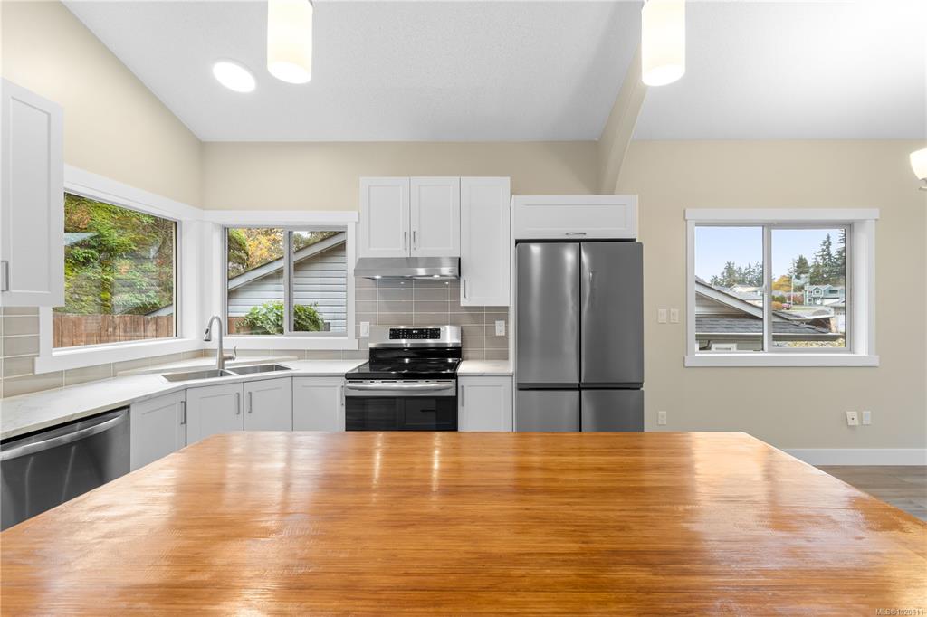 Fantastic family home walking distance to syuwenct (previously Coal Tyee) Elementary. The open-concept main level is ideal for families and entertaining, featuring 11' vaulted ceilings, an updated kitchen with tons of storage, ample dining space, and a cozy gas fireplace in the living area. Sliding glass doors open onto a super private back patio and yard space, perfect for hanging out around the firepit. The spacious primary bedroom features a huge deep-set window for space and light and a full 4pc ensuite...