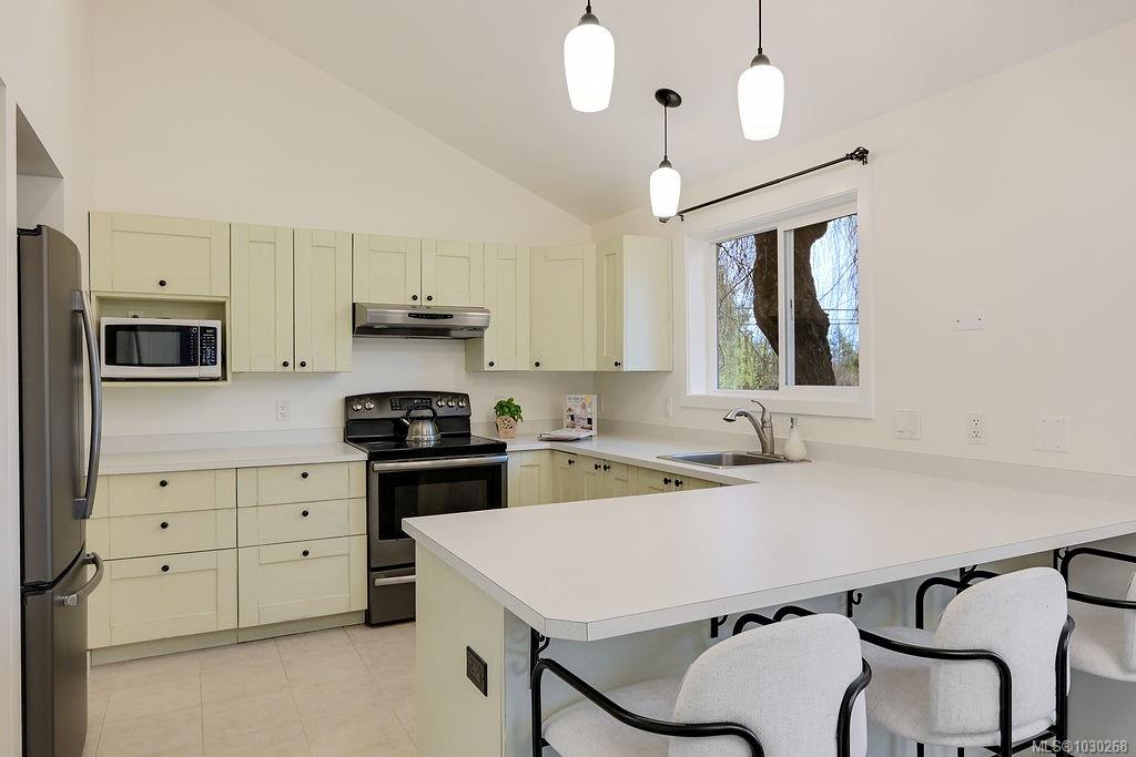 Welcome to this renovated rancher set on a level quarter-acre lot in North Saanich's Bazan Bay area with partial ocean and mountain glimpses. Natural light flow through the spacious 1822 ft.² layout encompassing 3 berms, 2 baths, office,living room, family room, ‘heart of the home’ kitchen, plus laundry/mudroom w/ loft storage. Cohesive freshly painted interiors creating a great canvas for artwork, sleek recessed lighting in living room & hall, new kitchen light fixtures & hardware, all stainless steel app...