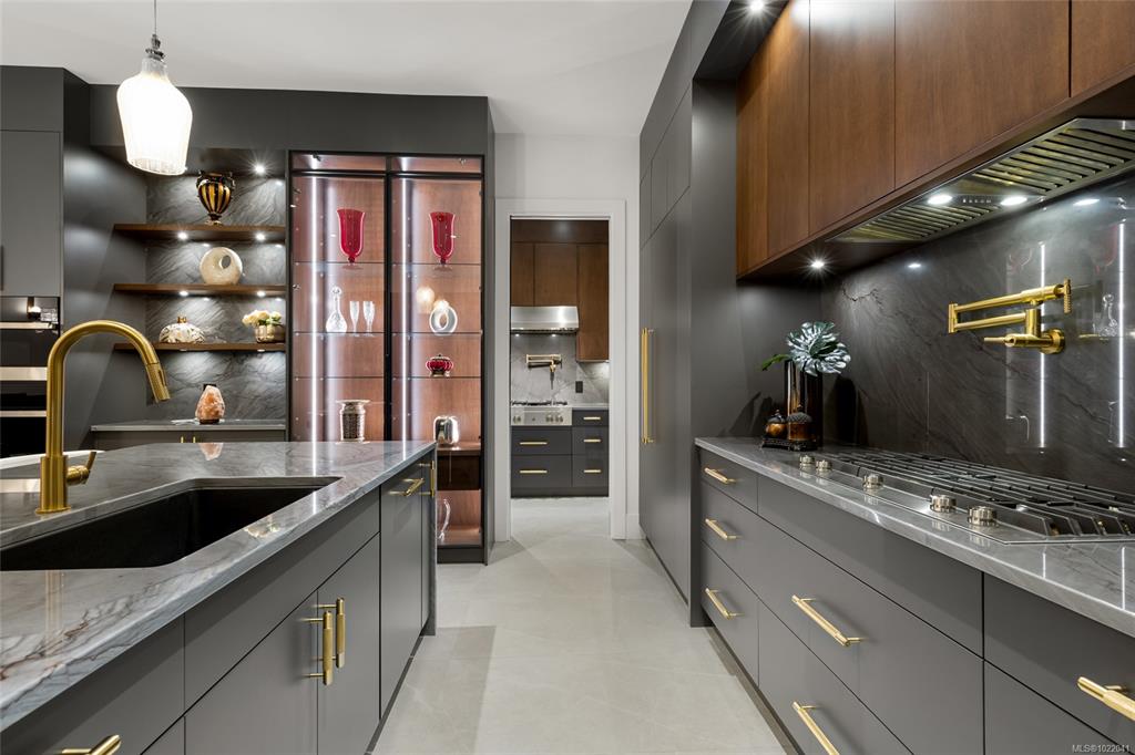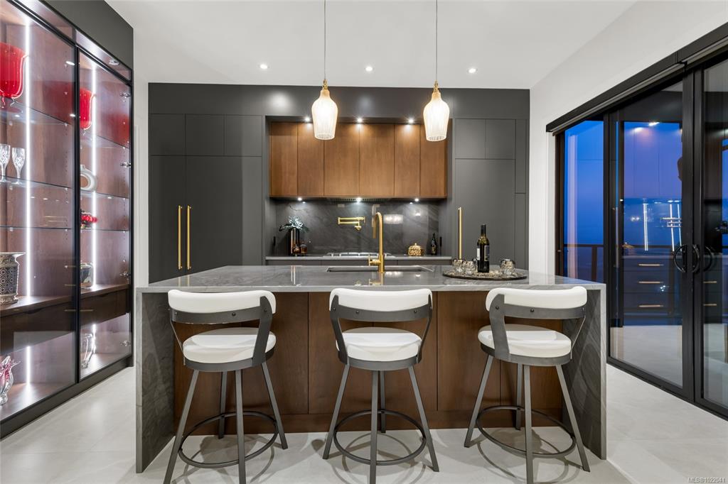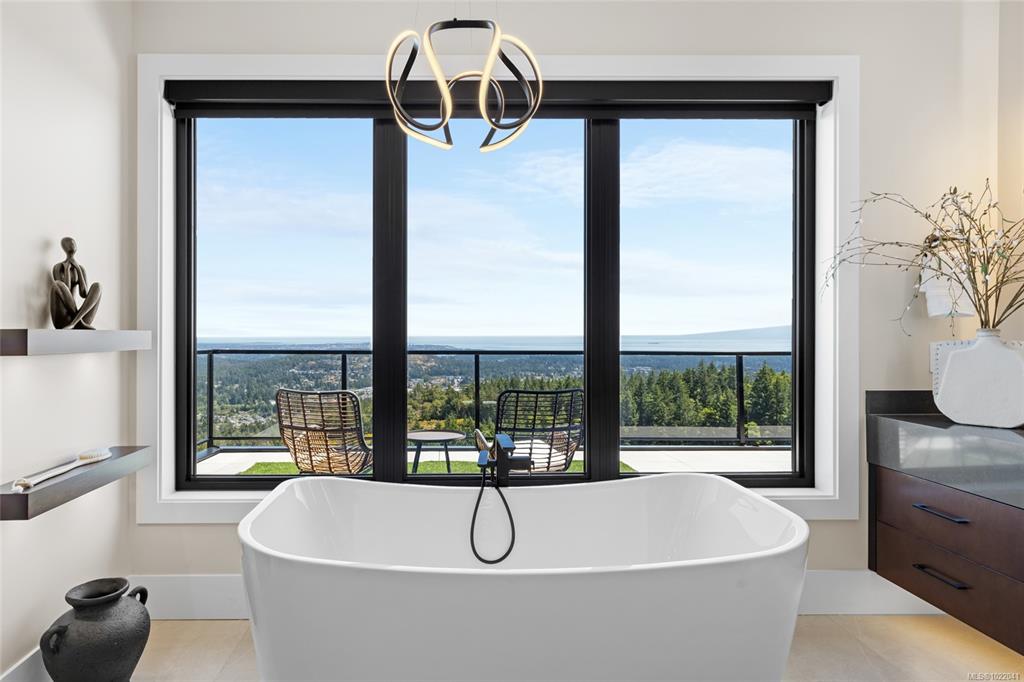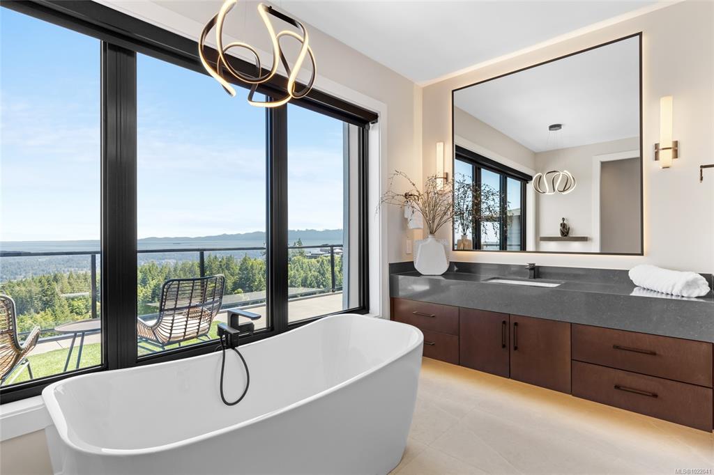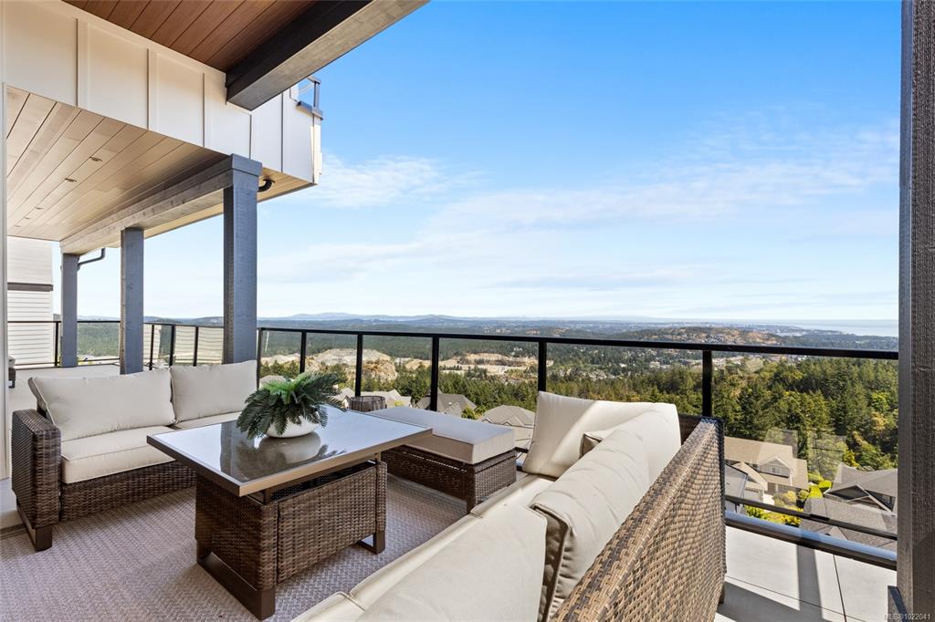 Discover the ultimate in West Coast sophistication with this custom-built residence located high on Bear Mountain. Panoramic views of the ocean, mountain, & city lights, make this truly a living masterpiece that evolves with the light of the day. Designed for the discerning homeowner, the grand foyer & soaring ceilings create an inviting sense of scale, while expansive windows draw in the natural beauty and light. The heart of the home is a chef-inspired kitchen featuring top-tier appliances, a beautiful i...