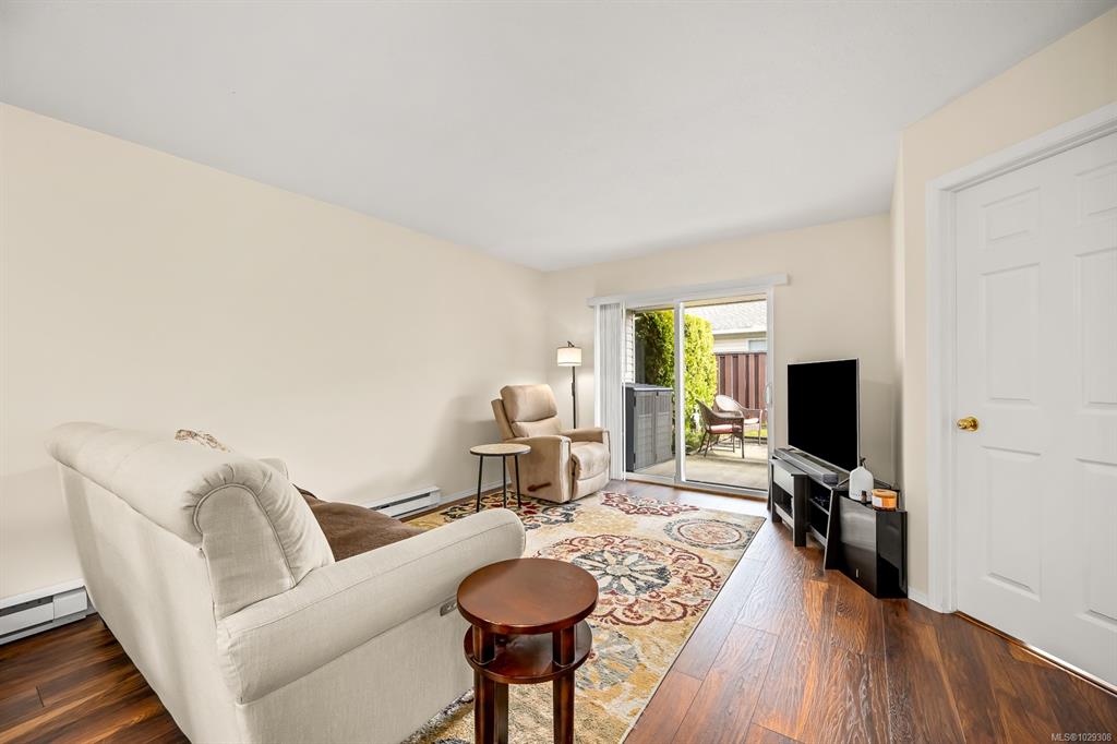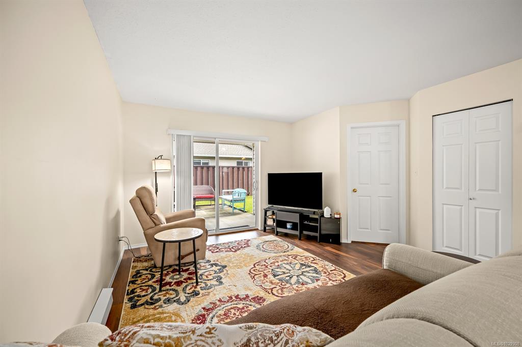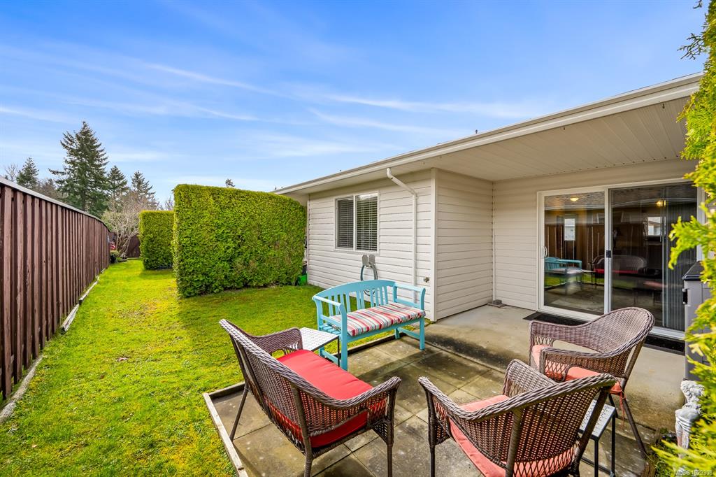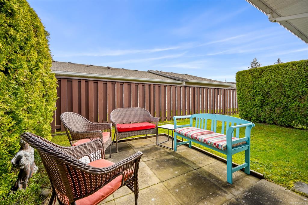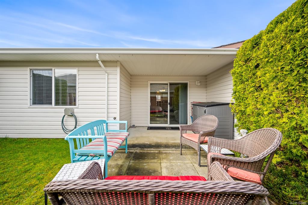 Affordable Comox patio home! Bright, clean & centrally located in desirable Comox neighborhood close to shopping, parks & amenities. This home is ideal for anyone seeking a smaller, comfortable & affordable living opportunity. Inside, the bright kitchen features plenty of counter space, backsplash & shaker cabinets. This opens to dining/living area with hardwood laminate floor & large sliding door to your private backyard patio, perfect for summer relaxing. The large primary bedroom has a walk-in closet...