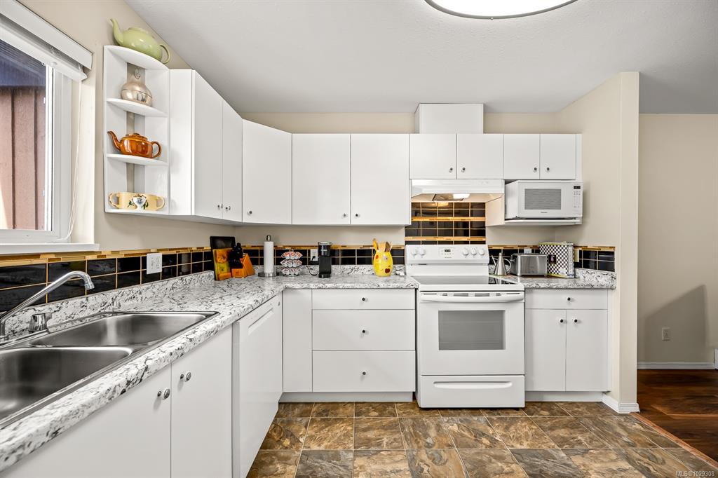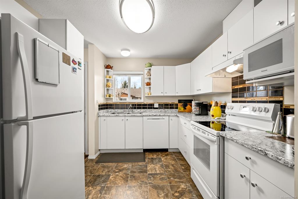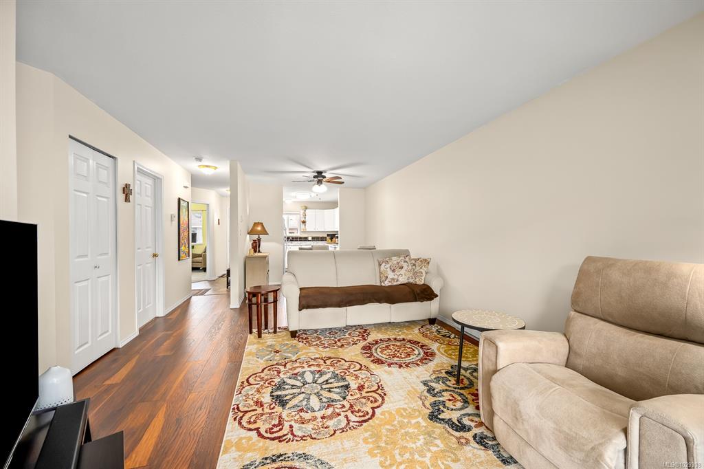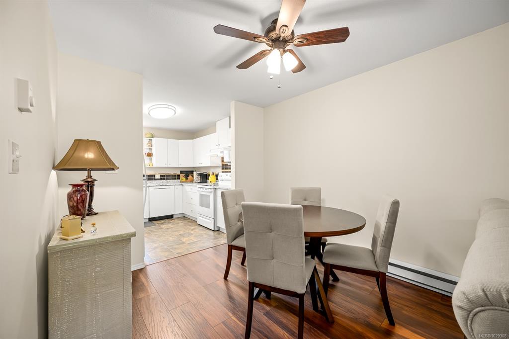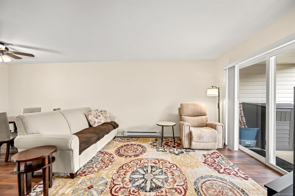 Affordable Comox patio home! Bright, clean & centrally located in desirable Comox neighborhood close to shopping, parks & amenities. This home is ideal for anyone seeking a smaller, comfortable & affordable living opportunity. Inside, the bright kitchen features plenty of counter space, backsplash & shaker cabinets. This opens to dining/living area with hardwood laminate floor & large sliding door to your private backyard patio, perfect for summer relaxing. The large primary bedroom has a walk-in closet...