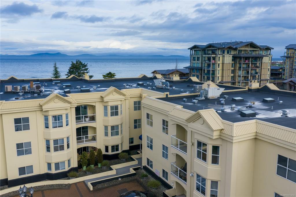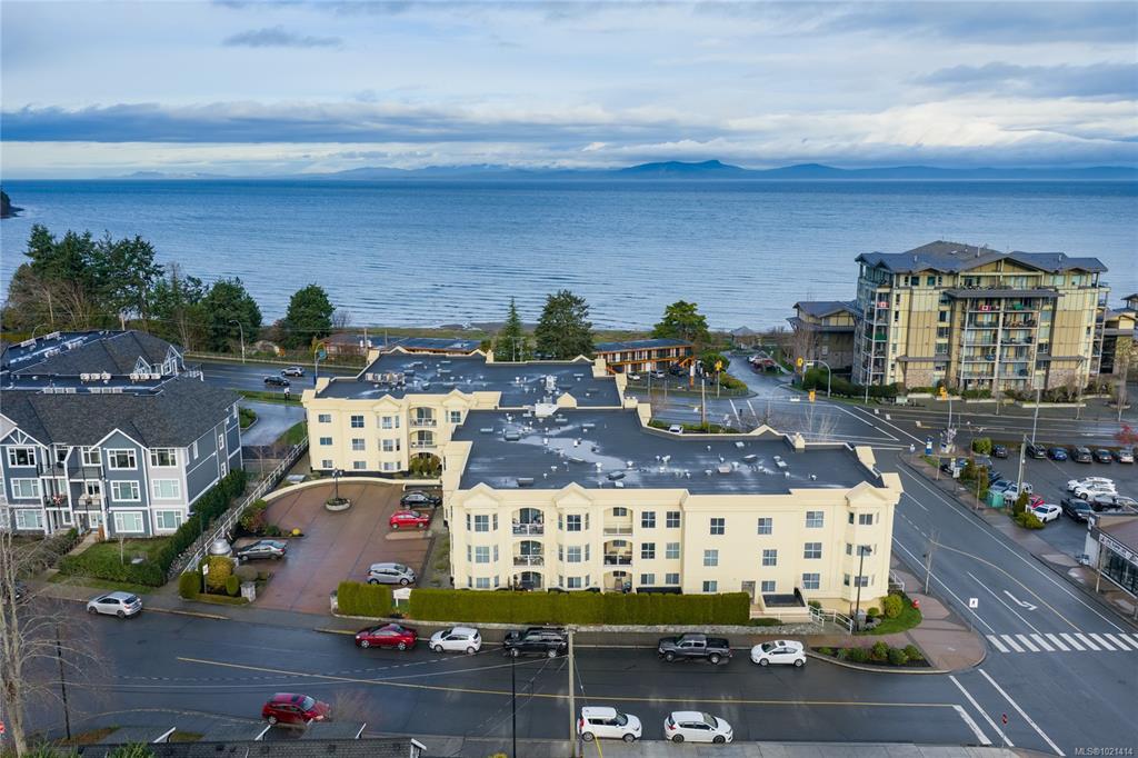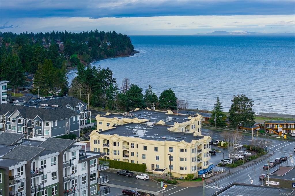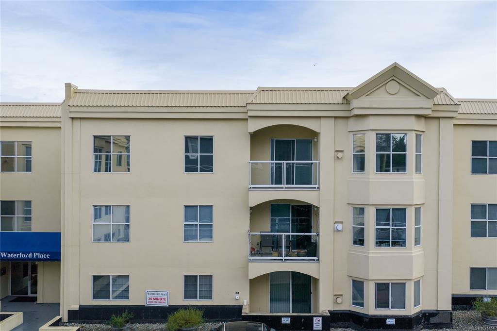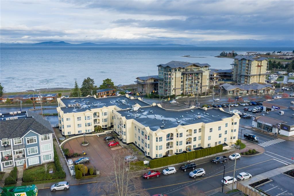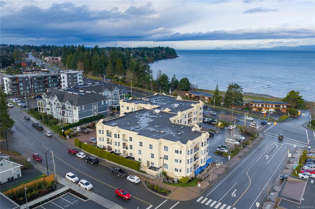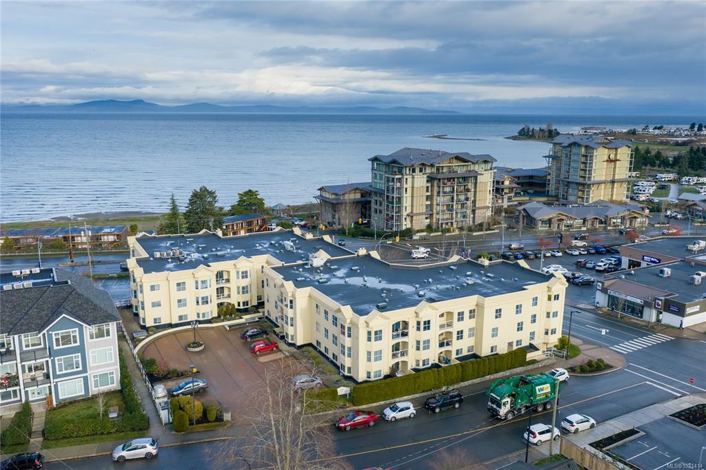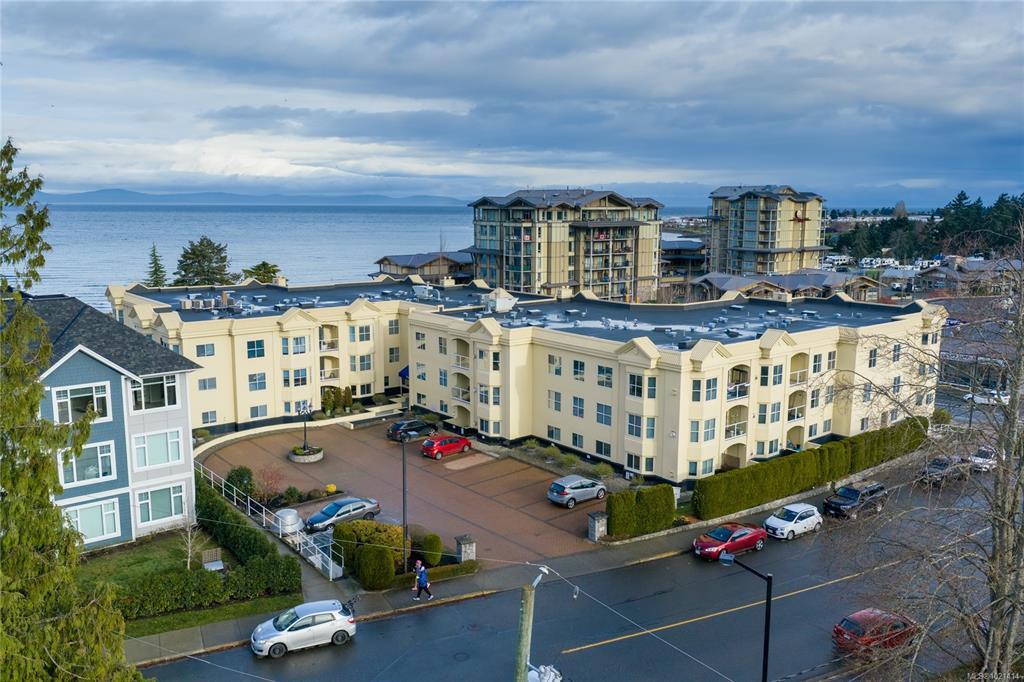 This top-floor 2-bedroom, 2-bathroom condo in Waterford Place offers an ideal combination of comfort and location. Set directly across from Parksville Beach and the boardwalk, it features a bright, spacious living room with crown molding and a gas fireplace. You are sure to appreciate the inviting eat-in kitchen equipped with stainless steel appliances and the covered west-facing balcony perfect for dining al fresco. Both bedrooms are generously sized, and the primary suite includes a walk-in closet with bu...