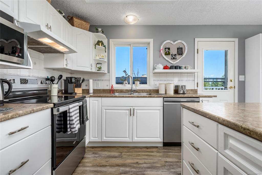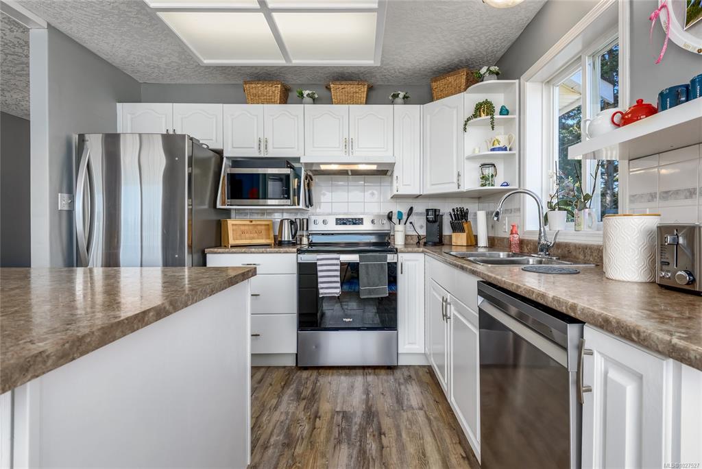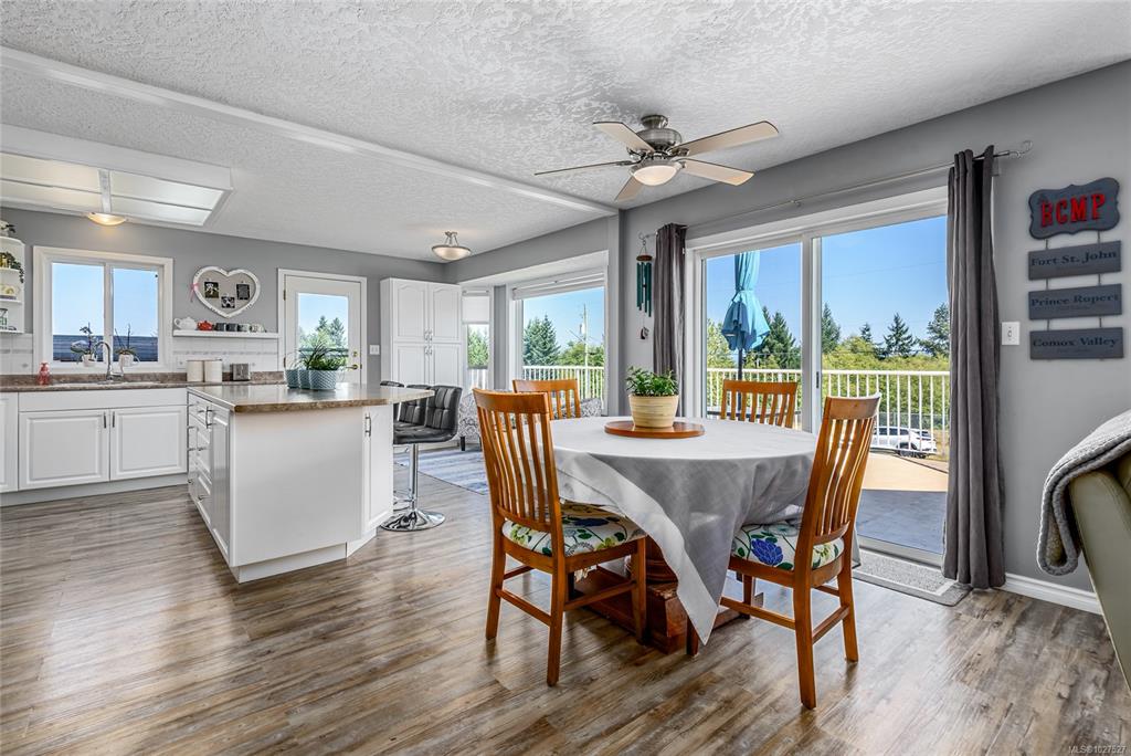 Corner lot, 0.44 acres, semi-rural north of Comox. 5 min walk to Seal Bay Park trails & beaches. 4 bed, 3 bath. Unobstructed natural views from living room, front windows & upper deck, peekaboo ocean views. 2 driveways off different roads, RV & boat parking. Upper level: living & dining, gas FP (serviced Jan 2026), large windows, updated kitchen w/ new SS appliances. Roof replaced 2025, Harder Roofing, 25yr shingles, 10yr labor warranty. Master bath flooring 2025, main floor flooring 2024, new water heater ...