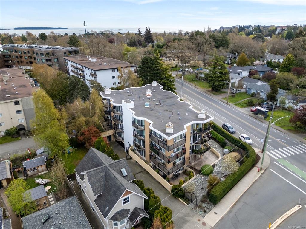 Not just a fantastic location in beautiful Oak Bay, but also a coveted quiet location within the building, this large (approx 900 sq ft) 2 bed 2 bath condo is a top floor NE corner unit which enjoys natural light all day long with views of greenery from the many windows and sliding doors that access the generous balcony. This steel and concrete building is well managed with a healthy contingency fund and a well organized strata. Enjoy your morning coffee on the balcony and a cross breeze in the afternoons. ...