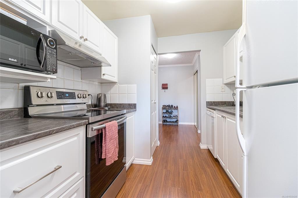 Lovely 2 bedroom, 2 bathroom south-facing corner unit on the quiet, sunny side of the building. "Park Place" is centrally located, near parks, shopping, with easy access to transit and bike lanes. The suite features spacious living room with feature electric fireplace, dining area, galley kitchen, Primary BR has a 4pc ensuite. In suite laundry and a private South-facing deck overlooking lovely foliage and a quiet side street. Laminate floors in the living, dining and kitchen areas. Brand new carpet in both...