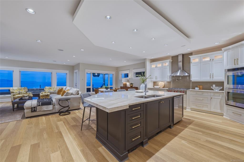 Exceptional oceanfront home offering over 6,600 sq. ft. of quality West Coast design. Nearly $1M invested in renovations & landscaping has created a totally private, quiet retreat w/panoramic ocean views toward Mt. Baker & the San Juan Islands. The main level provides ideal one-level living with the primary suite, office/den, open kitchen, family, & breakfast areas, living, dining, plus additional bedrooms. The gourmet kitchen features high-end appliances, large prep areas & butler's pantry, & access to a o...