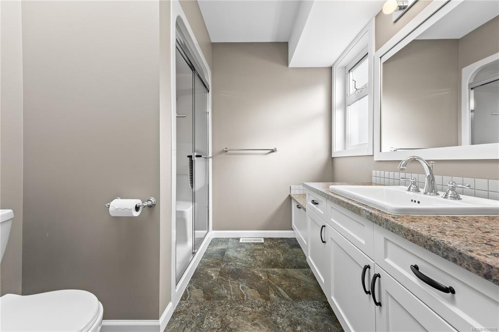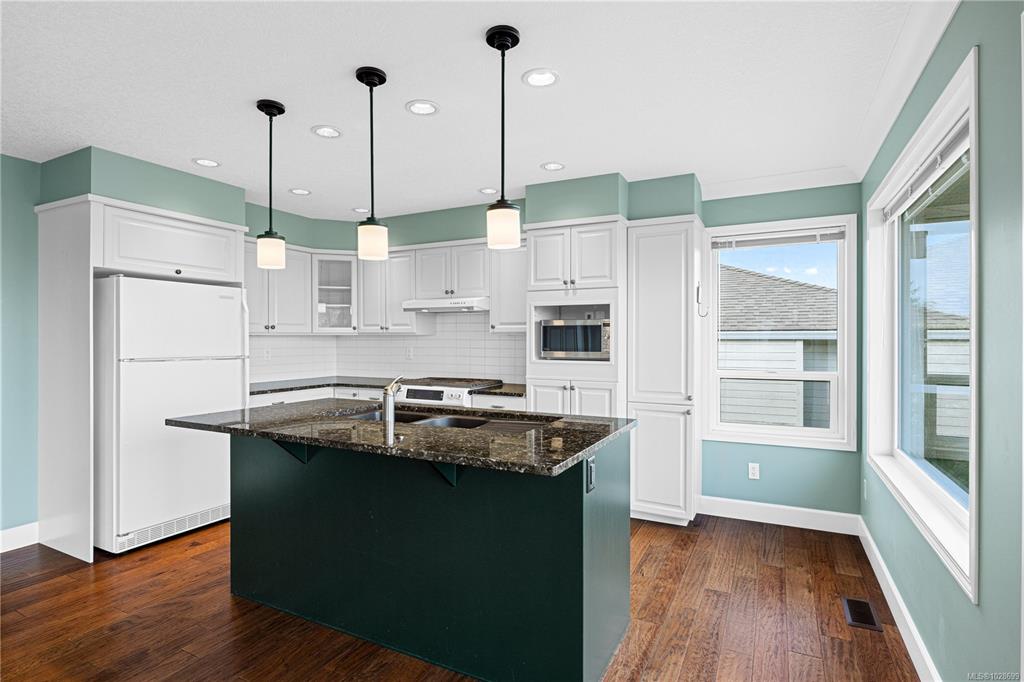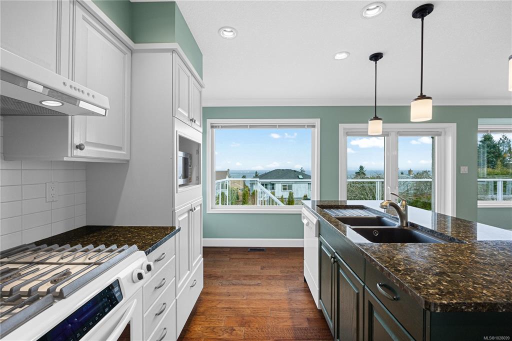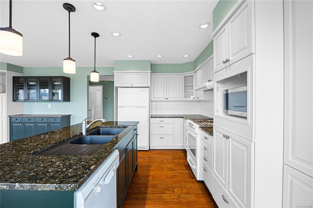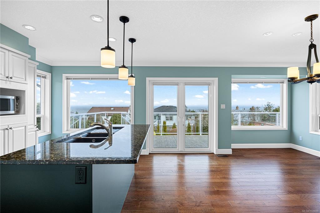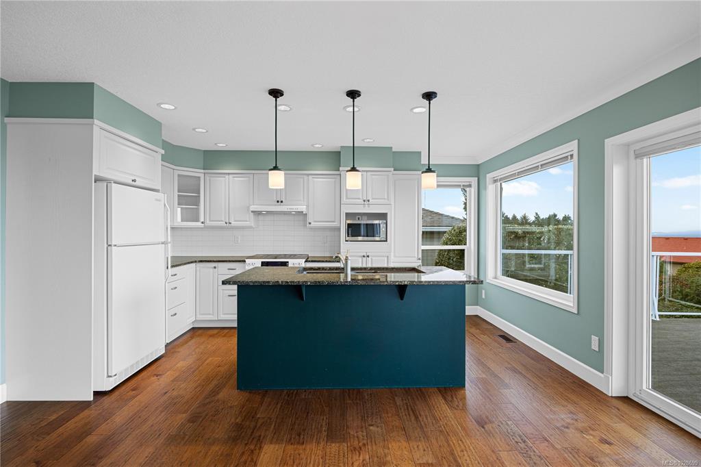 Enjoy comfortable main-level living with ocean views in this well-maintained North Nanaimo home, ideally suited for retirees or downsizers seeking an easy lifestyle. Offering 2,367 sq ft of total living space, this 4-bed, 3-bath home is tucked away on a quiet cul-de-sac and features a flat driveway for convenient access. The bright living room captures beautiful ocean and mountain views and includes a cozy gas fireplace. The kitchen offers granite countertops, a large island, and abundant cabinetry. Solar p...