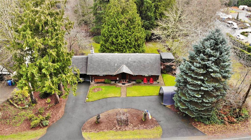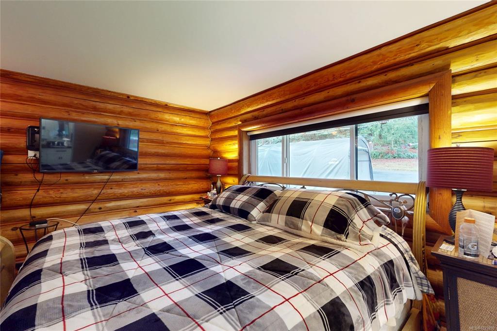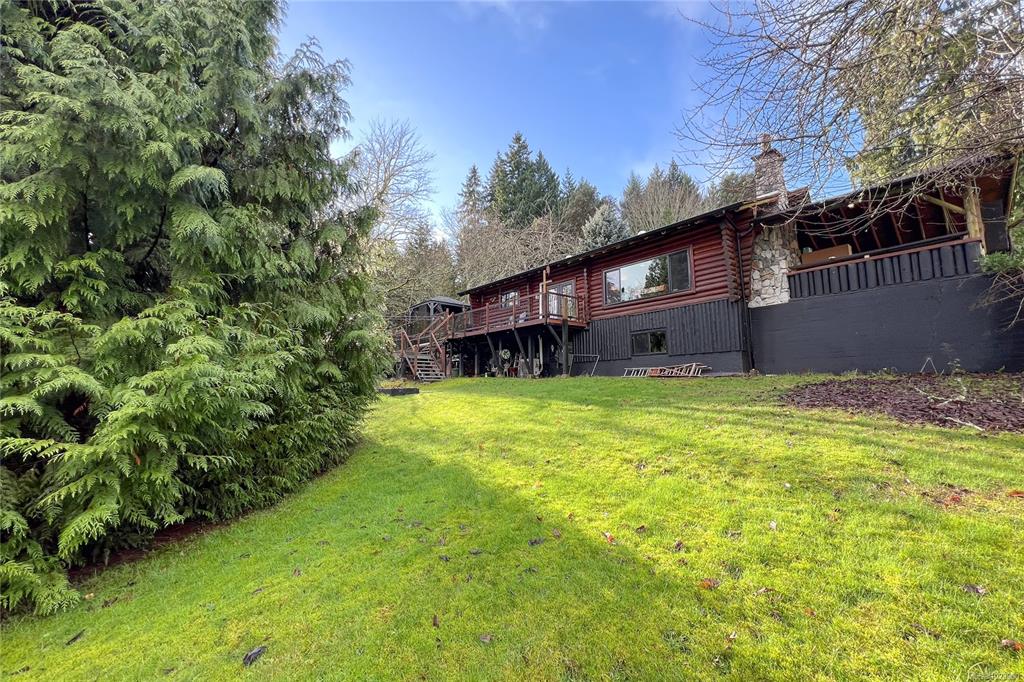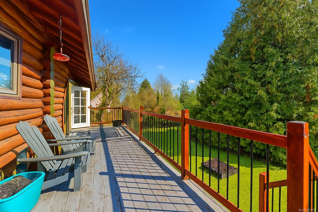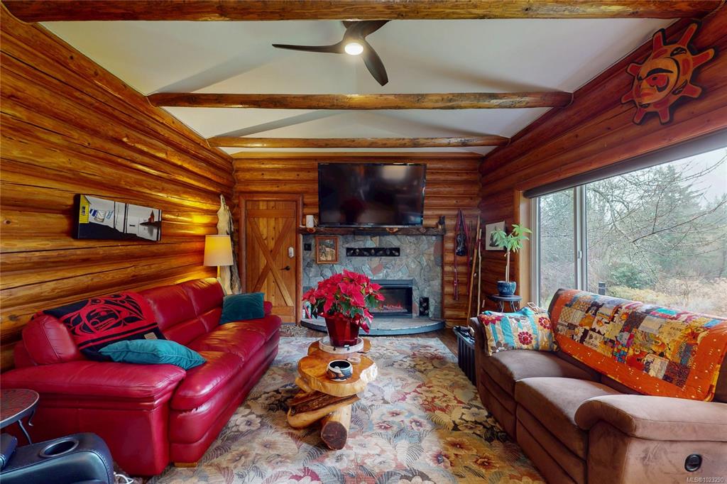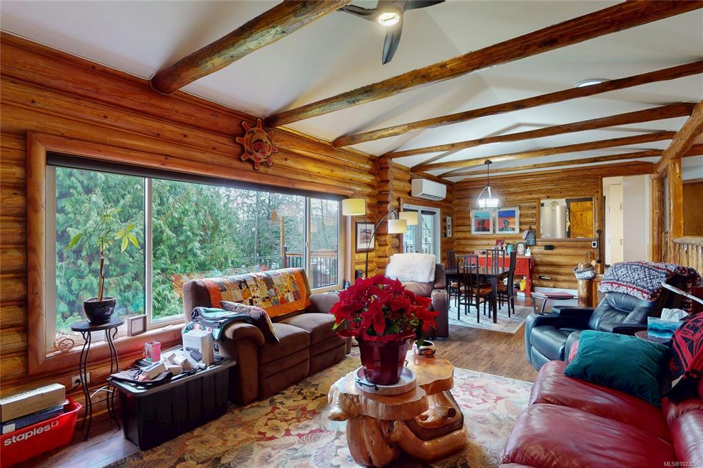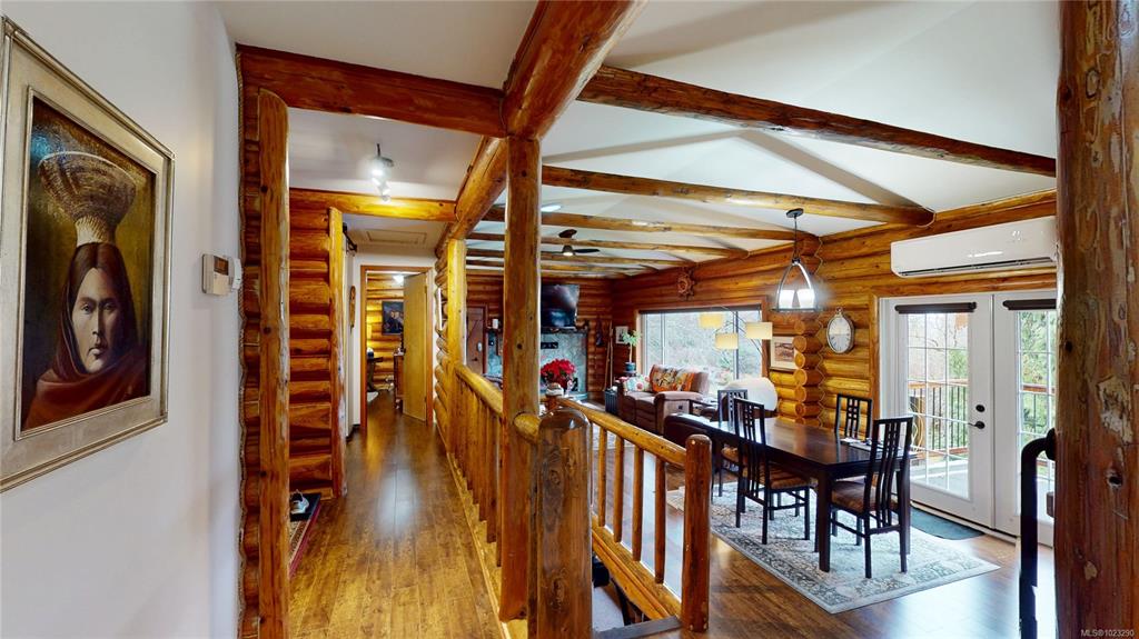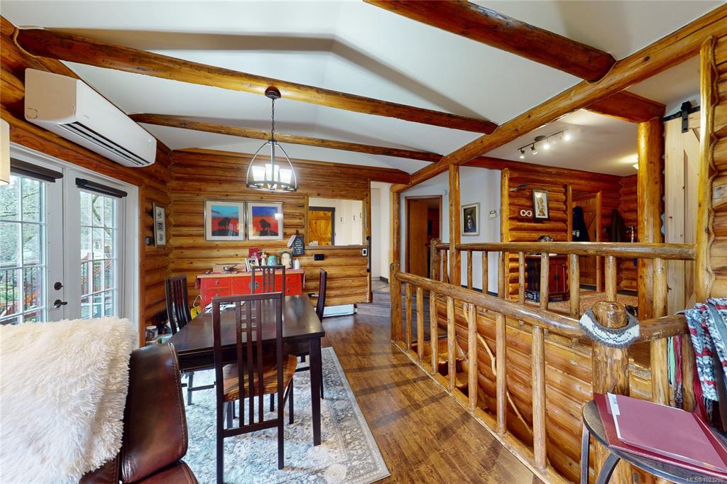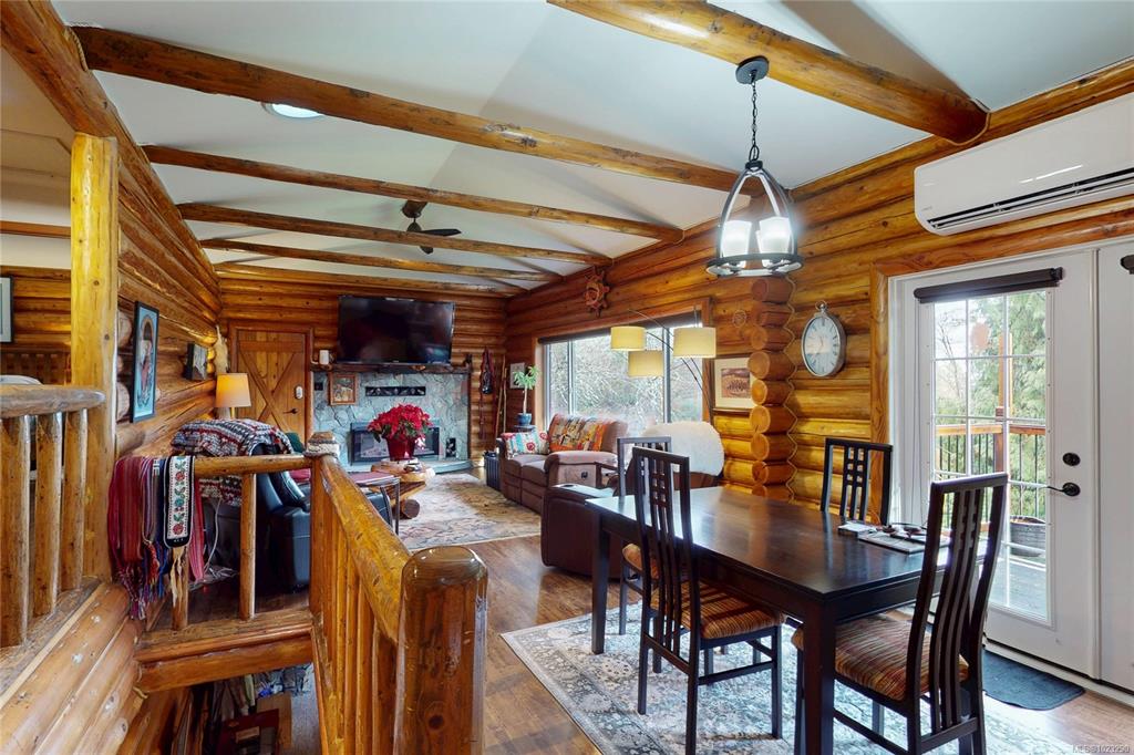 Discover the charm of this rustic log home in South Mill Bay,nestled on a tranquil half-acre lot at the end of a quiet no-thru road—just 17 minutes from Langford.This inviting 3 bedroom rancher features the warmth of wood throughout and a full walkout lower level.The living and dining area exudes cozy ambience with a wood-burning fireplace and new French doors opening to a spacious deck overlooking a fenced backyard.Recent upgrades include a new kitchen with heated floors,a new ensuite and refreshed 2nd bat...