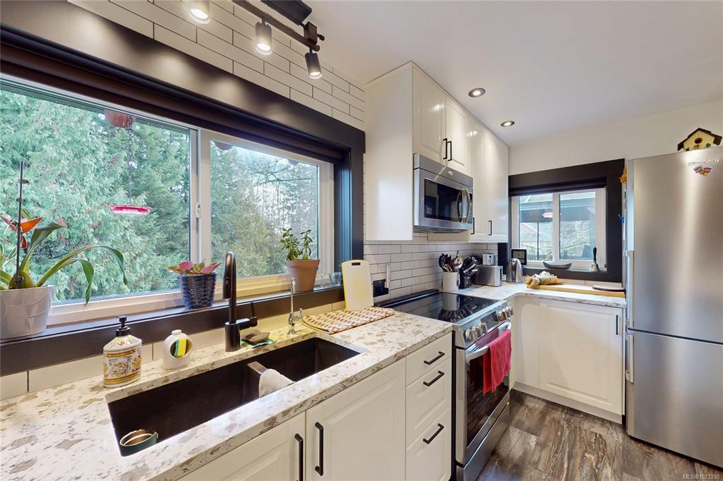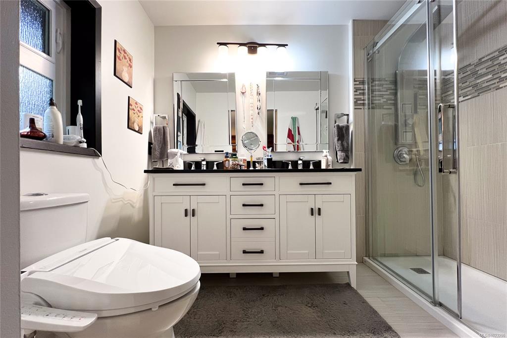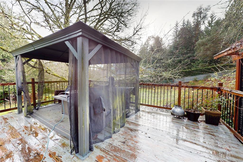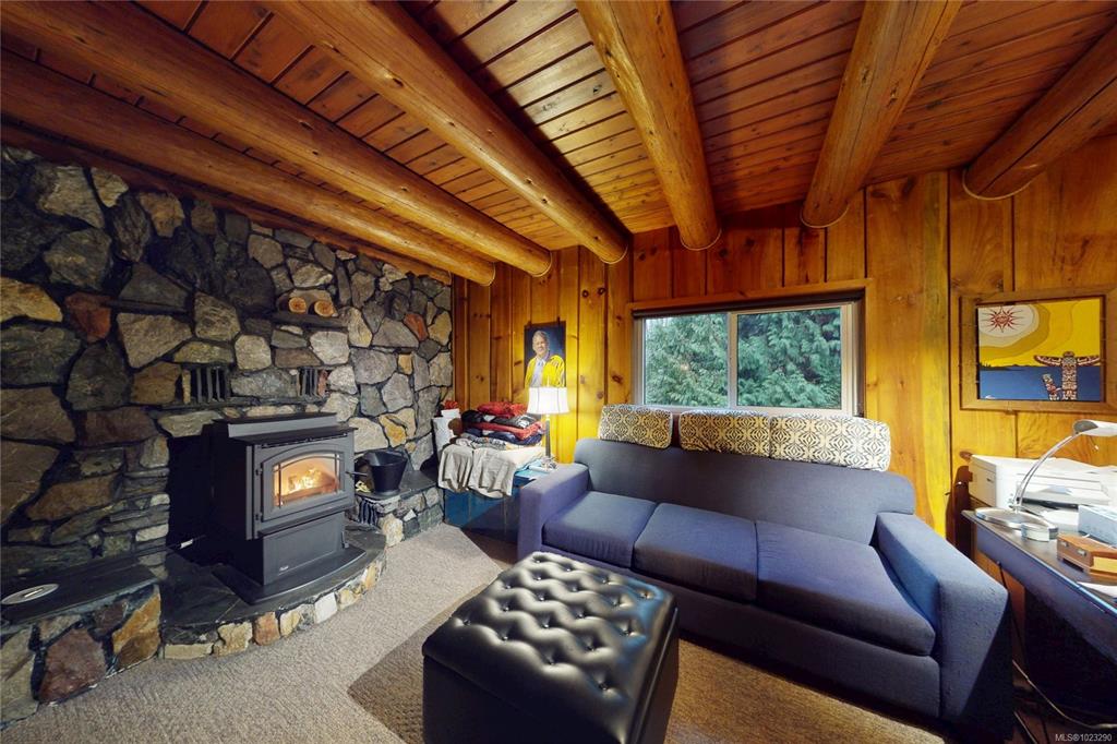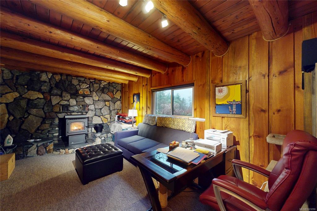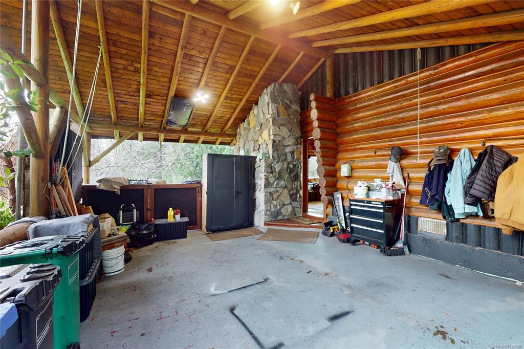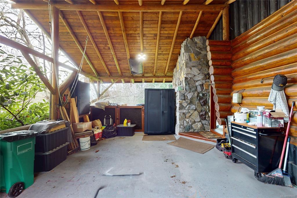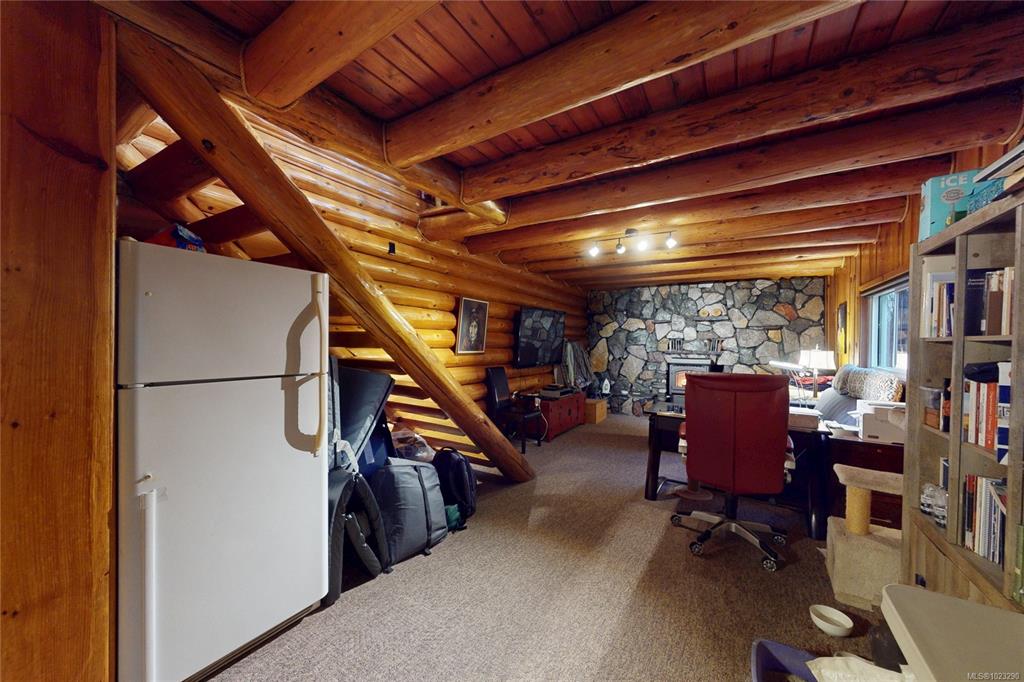 Discover the charm of this rustic log home in South Mill Bay,nestled on a tranquil half-acre lot at the end of a quiet no-thru road—just 17 minutes from Langford.This inviting 3 bedroom rancher features the warmth of wood throughout and a full walkout lower level.The living and dining area exudes cozy ambience with a wood-burning fireplace and new French doors opening to a spacious deck overlooking a fenced backyard.Recent upgrades include a new kitchen with heated floors,a new ensuite and refreshed 2nd bat...
