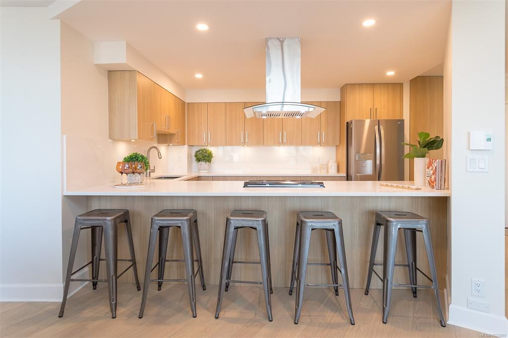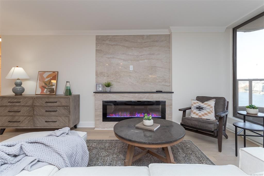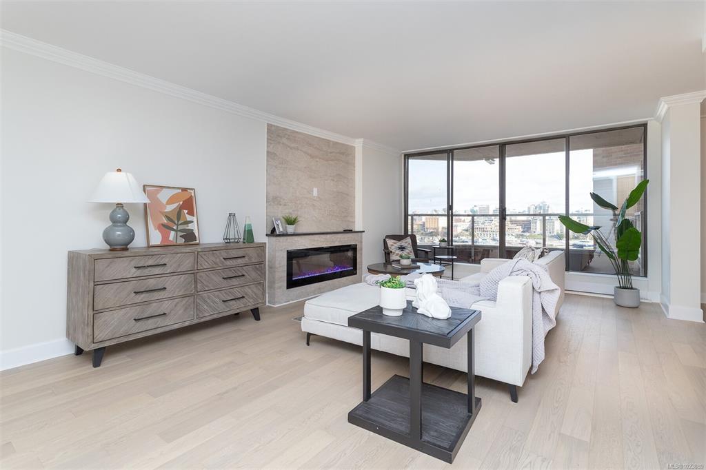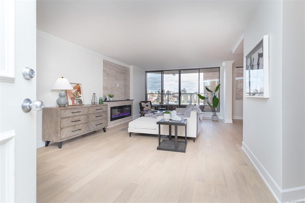 Come and discover this absolutely stunning 8th floor 2-Bedroom, 2-Bath condo with some of the most incredible views of the magical Victoria Inner Harbour, marina's, and city including the historic Empress Hotel. This large 1200 sf home has been completely transformed into a modern and sophisticated residence so you can just move in and enjoy. You will love the brand new wood grained chefs kitchen featuring quartz counters, 5 person eating bar, new Stainless Steel appliances, and under-counter lighting. Very...
