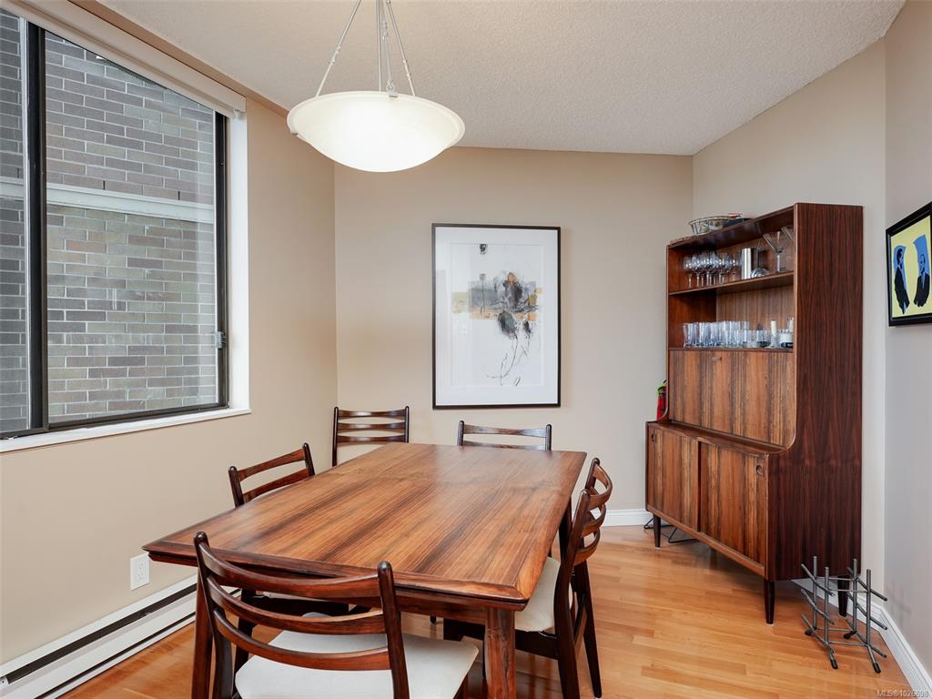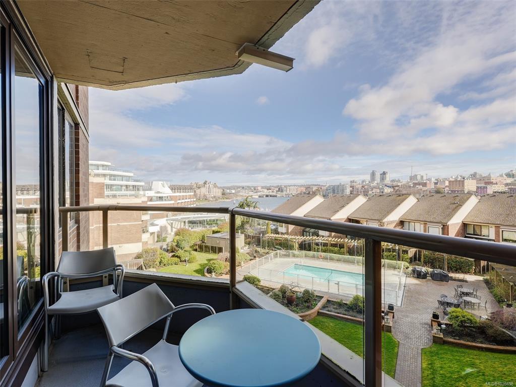 LAUREL POINT CONDO WITH OCEAN VIEWS. A highly coveted luxury condo complex in the heart of James Bay. Two bedrooms and two bathrooms offering a spacious living space with beautiful engineered hardwood flooring. The kitchen has newer appliances and bar seating, separate dining area and a living room with access to your covered balcony with a view of the pool and the harbour. The primary bedroom features a walk-in closet and a 4 piece ensuite. This building has much to offer with an outdoor pool, courtyard wi...