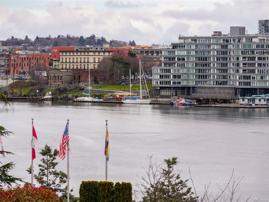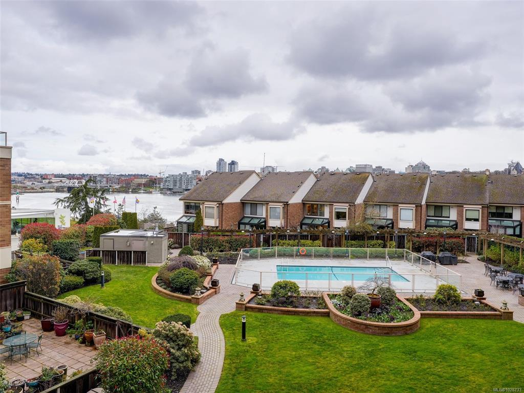 Experience refined Inner Harbour living in this beautifully maintained residence at prestigious Laurel Point. This desirable suite enjoys tranquil views over the complex’s manicured courtyard and pool, with lovely water views toward Victoria’s vibrant Inner Harbour. An elegant fireplace anchors the spacious living and dining area, opening to a private balcony—perfect for relaxing and taking in the outlook. The kitchen offers excellent workspace and a spacious breakfast nook, while the generous primary retre...