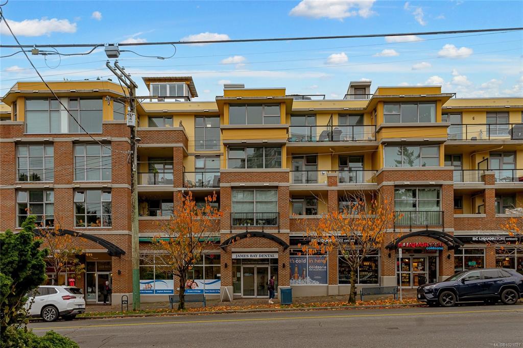 OPEN HOUSE SUN 12-2. This very homey one-bedroom condo is in one of the best locations for living near downtown. In the heart of James Bay, literally a stone’s throw from groceries, restaurants, pub, cafe, park—and a short walk to downtown in one direction and to the beach in the other. The west-facing unit has an excellent layout with 9 foot ceilings, floor-to-ceiling windows, great light and a large private balcony. Featuring premium finishings including wood floors, wood kitchen cabinets, stone counters,...