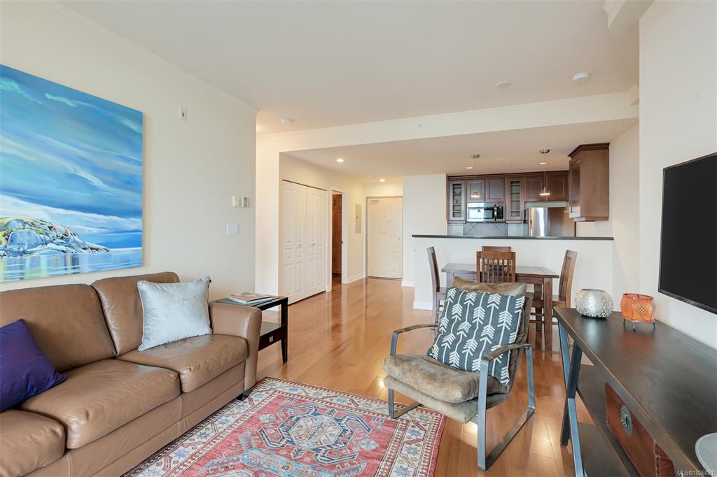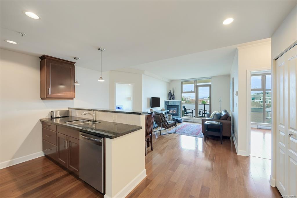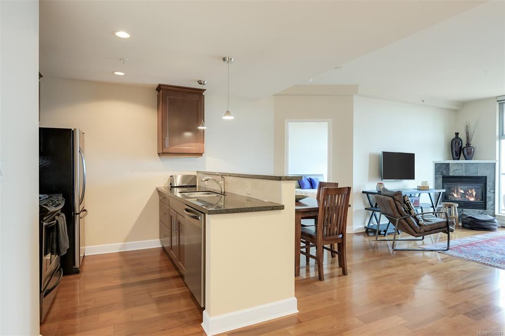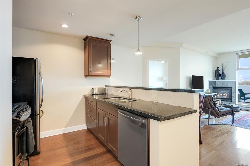 Enjoy a superb walkable lifestyle in the heart of one of Victoria’s most desirable neighbourhoods, James Bay! This well cared for suite offers an attractive layout that includes two bedrooms plus a dedicated home office with built-in desk and storage space. The open living area features a cozy gas corner fireplace, kitchen with gas cooktop and stone countertops and access to the entertainment sized covered balcony with gas BBQ hookup and open city views toward the Legislature and distant mountains beyond. T...