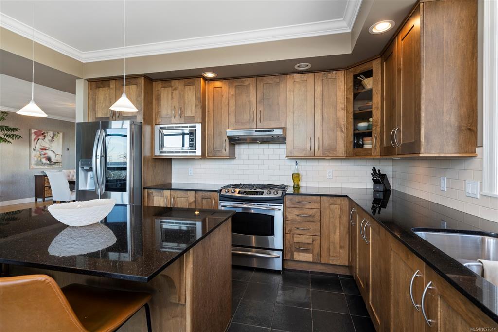 Breathtaking ocean views at Marine Vista, one of Nanaimo’s most prestigious and impeccably maintained concrete residences. From the elegant lobby to the peaceful, grassed courtyard, the building exudes luxury, privacy, and pride of ownership. This spacious 2-bedroom plus den, 2-bath home showcases stunning ocean, marina, and mountain views from two decks. High ceilings and expansive windows fill the home with natural light, highlighting its modern design and refined finishes. The chef-inspired kitchen featu...