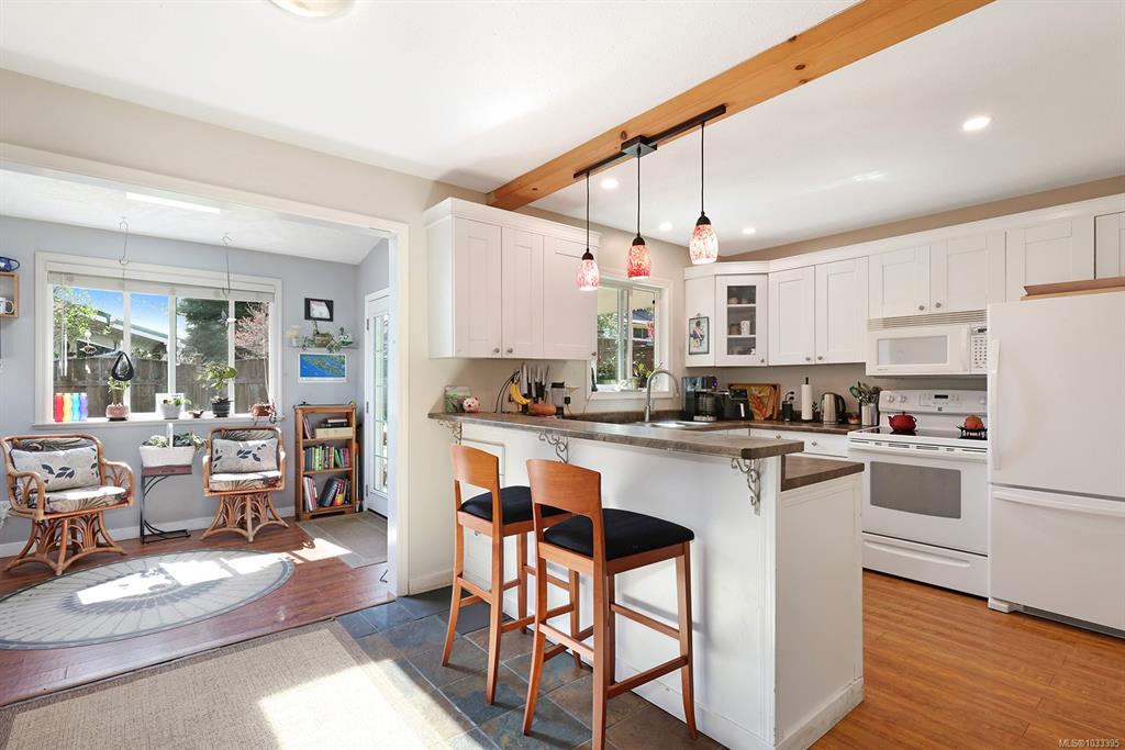 Old Orchard half duplex! Enchanting and simply adorable, streaming sunlight illuminates the sunroom w/ skylight and French doors to access the covered patio. Boasting 909 sf, 2 BD/ 1 BA, this home has been beautifully updated and renovated over the years, bright white modern kitchen w/ shaker cabinets and raised bar with seating, a large pantry closet with stacking washer/dryer. Slate tile flooring, Acacia hardwood flooring, West Coast inspired shiplap and exposed wood beam and open shelves create a comfort...