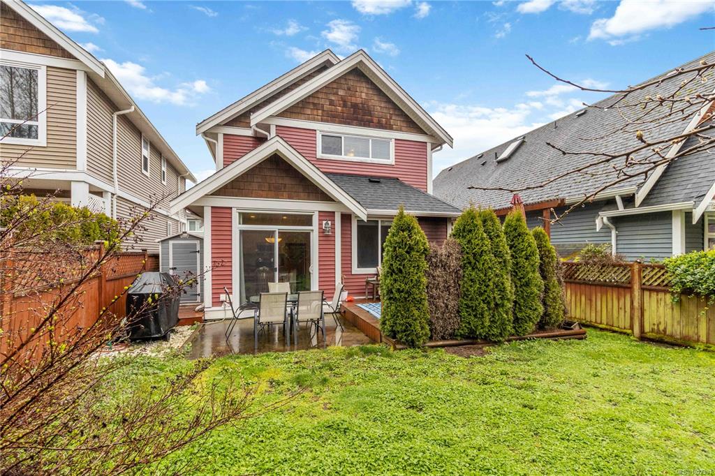 Tucked away on a quiet cul de sac in sought after Trickle Creek Estates, this well cared for 3 bedroom, 3 bathroom home with a den backs onto peaceful parkland and offers a wonderful sense of privacy. Built in 2010, the main floor features a bright living room with cozy gas fireplace, a welcoming dining area, and a country style kitchen with classic Shaker cabinets and breakfast bar. Sliding glass doors lead to the sunny west facing backyard and patio, perfect for summer evenings, complete with a gas BBQ ho...