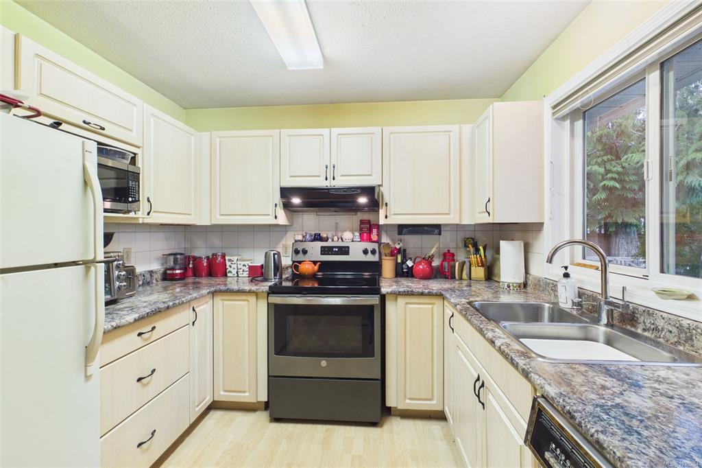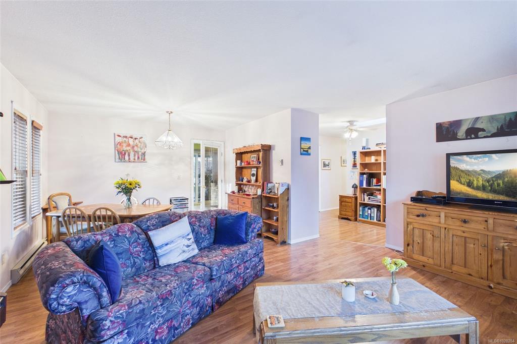 Located in the highly sought-after Hermitage Park neighborhood just minutes from the heart of Qualicum Beach, this well-priced 2 bedroom, 2 bathroom rancher offers comfortable one-level living on a corner lot backing onto a small park for added privacy. The home features vinyl plank flooring, a spacious living and dining area, and an open kitchen and den layout that creates an inviting everyday living space. The primary bedroom includes a convenient 2-piece ensuite, while the main bath features a skylight...