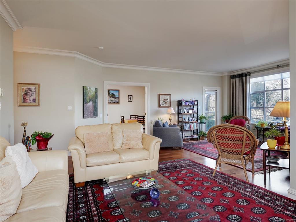Location! Location! Location! Arguably the best location in Greater Victoria " The Hamilton" is near all amenities including transportation, library, shops, Monterey Centre and restaurants. The location provides a great lifestyle and the easy walk to the beach is a bonus. The building has been very well maintained, is built from reinforced concrete and offers secured underground parking. The well designed suite has easy access, a sunny westerly exposure and nine foot ceilings with crown moldings. The living...