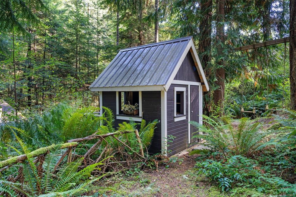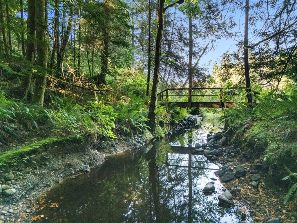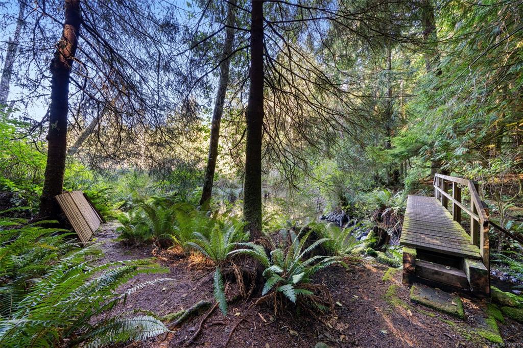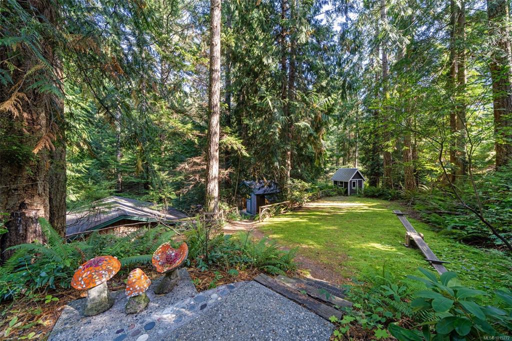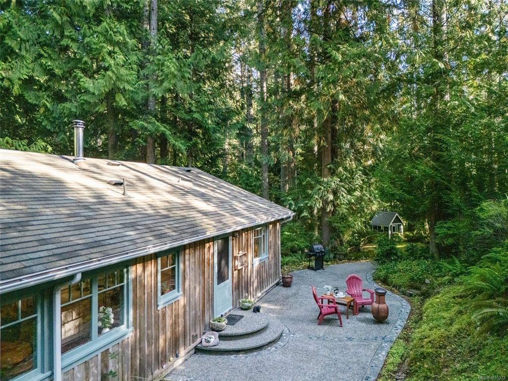 An exceptional 5-acre forest retreat offering privacy, character, lifestyle! Enchanting trails wind through ferns, cedars, firs, revealing sunlit clearings, lush garden pathways, magical corners of the woods. One trail leads to a dock on the pond — the perfect place to pause and reflect. Another meanders to fenced gardens, others invite quiet discovery. Whimsical playhouse adds delight, seasonal stream enhances the setting. Anchoring it all is gorgeous mid-1950s Craftsman-inspired rancher with 2 bedrooms & ...
