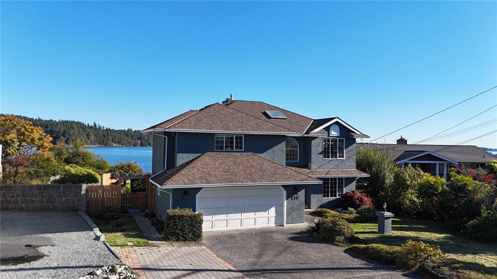 Welcome to your oceanfront retreat overlooking the serene Esquimalt Lagoon! This beautifully designed 2,800+ sq ft home is tucked away on a quiet cul-de-sac and captures breathtaking sunrise and sunset views from both levels. Enjoy the coastal scenery from the 21x8 upper balcony or the expansive 680 sq ft lower deck—perfect for entertaining or unwinding. The open-concept main level features a bright kitchen with a breakfast bar, spacious living and dining areas, and a versatile den or second bedroom. The pr...