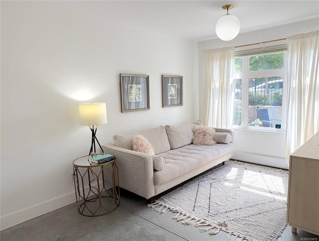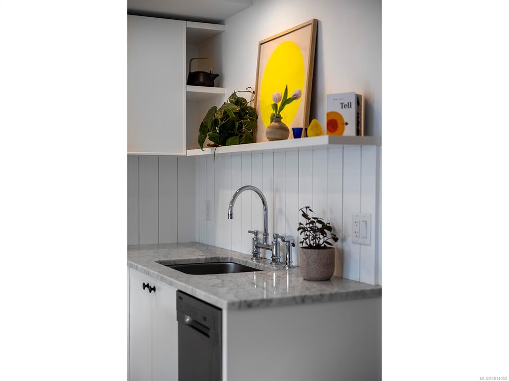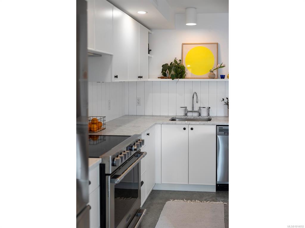This stylish, south-facing patio suite with direct outside access—ideal for pet owners—is a rare opportunity, marking the first time in a year that a unit of this type has been available at Wilson Commons. Completed in 2021, this well-designed building blends contemporary architecture with a strong sense of community. Inside, you’ll find polished concrete floors, triple-paned windows, an air exchanger, elegant white marble kitchen counters, high-end hardware, and premium stainless steel appliances including...
