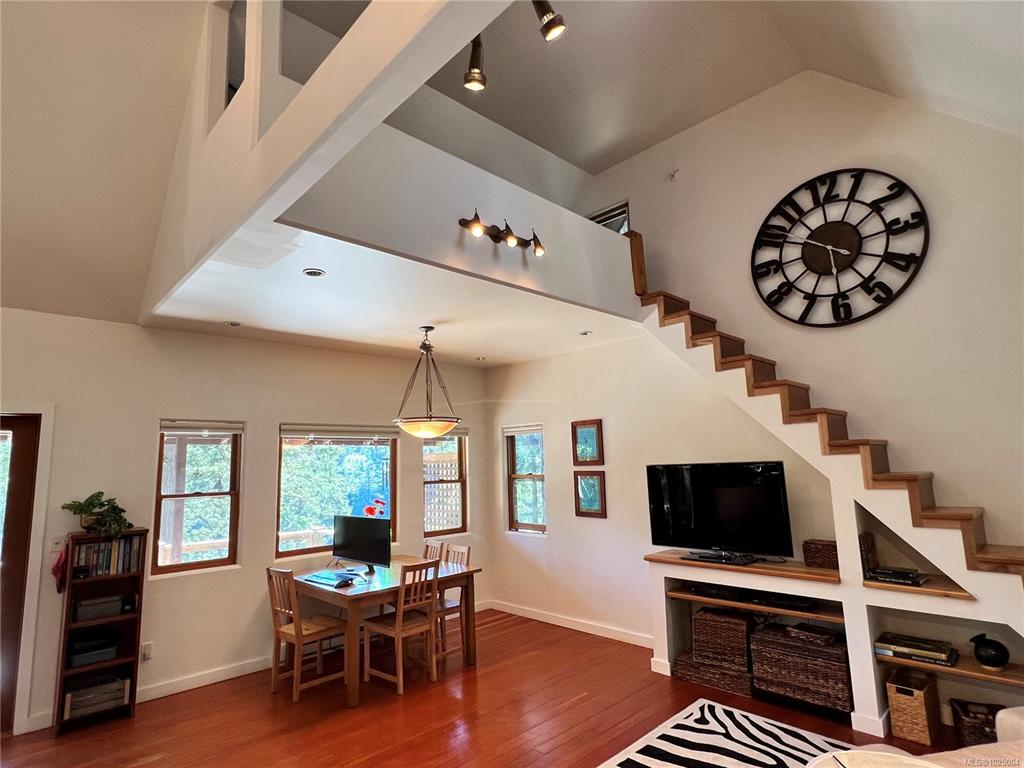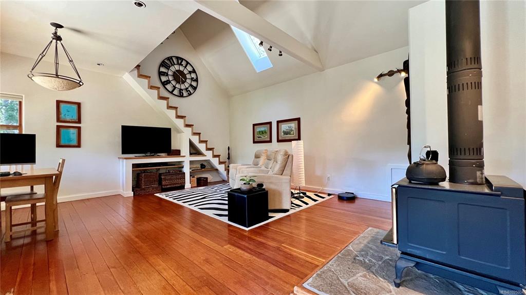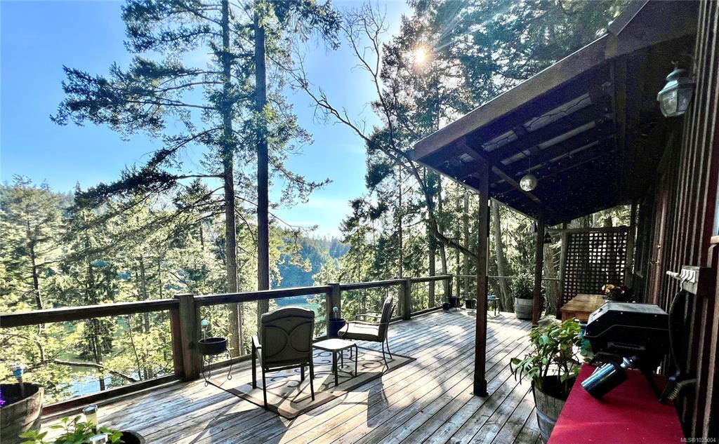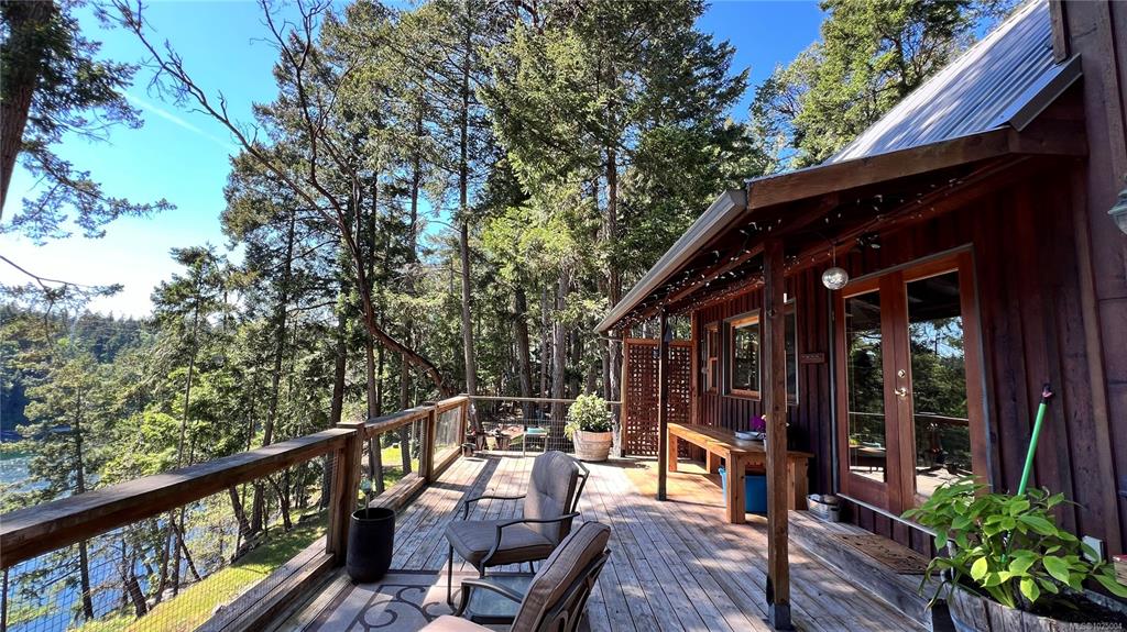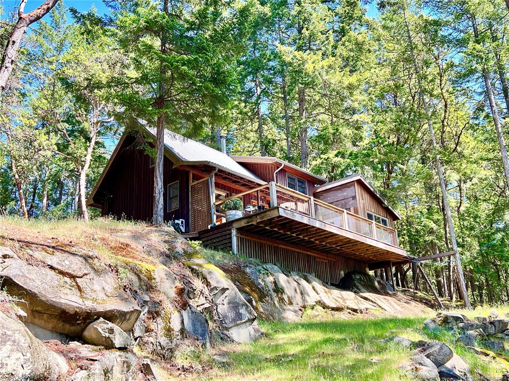 Nestled on a private, treed .69-acre lot, this distinctive island retreat offers an elevated coastal lifestyle above Dodd Narrows. Designed to connect with nature, the 1,256 sq. ft. residence captures sweeping ocean views as you watch the orcas dance in the currents from the comfort of your home. Featuring 2 bedrooms and 2 bathrooms, plus a loft and landing ideal for guest space or a home office. A partially finished addition provides exciting opportunity for a studio, or more room for guests. Reclaimed har...