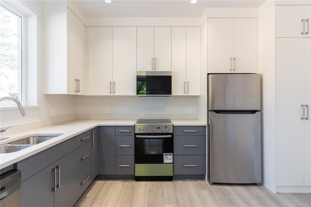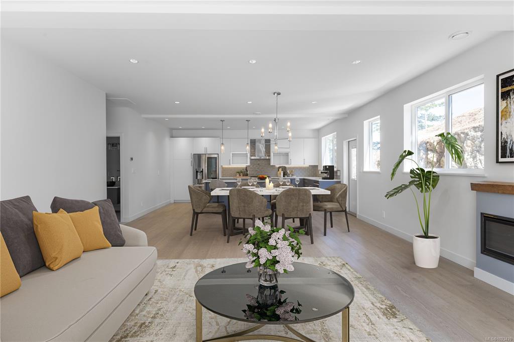 Modern living meets smart design in this exceptional View Royal property. Located on a quiet no-thru street, the main residence offers three bedrooms, three bathrooms, and a stylish open-concept living area that opens to a sun-filled south-facing deck. Quality finishes include hardwood flooring, quartz countertops, custom cabinetry, and a chef-worthy kitchen with high-end appliances and a large island. A double garage ensures ample storage and convenience. Adding to the appeal is a legal two-bedroom, two-ba...