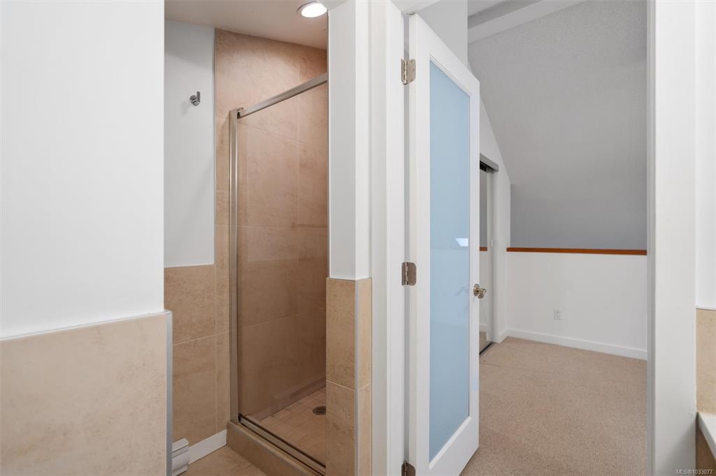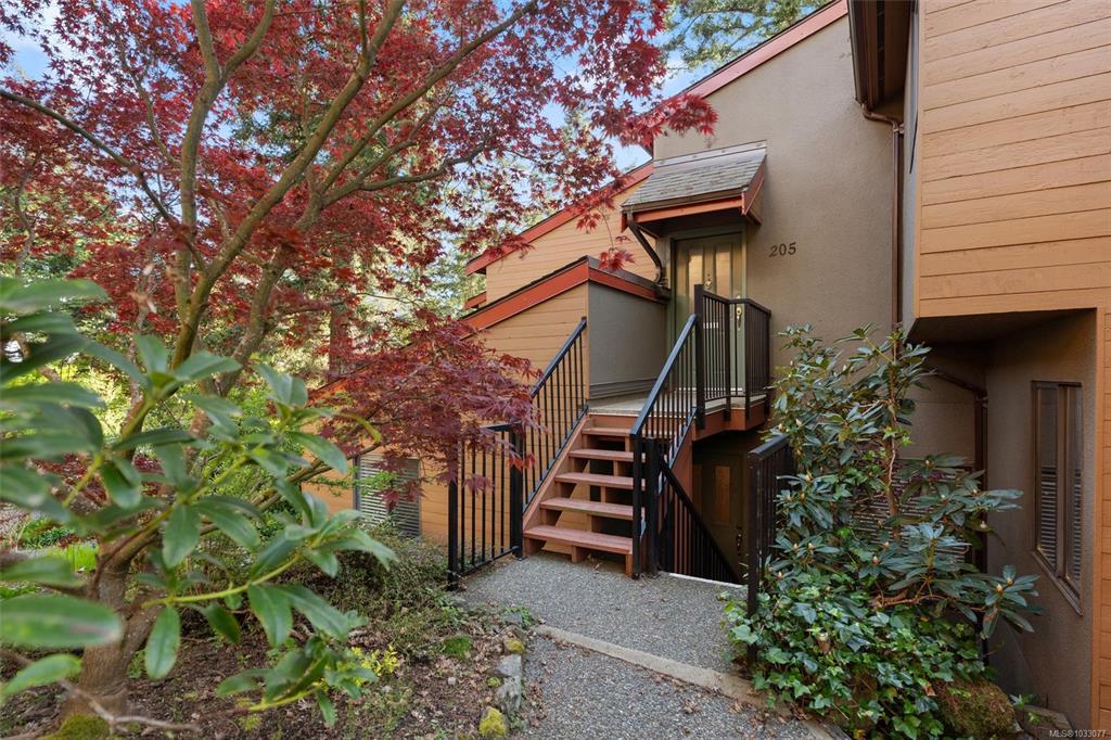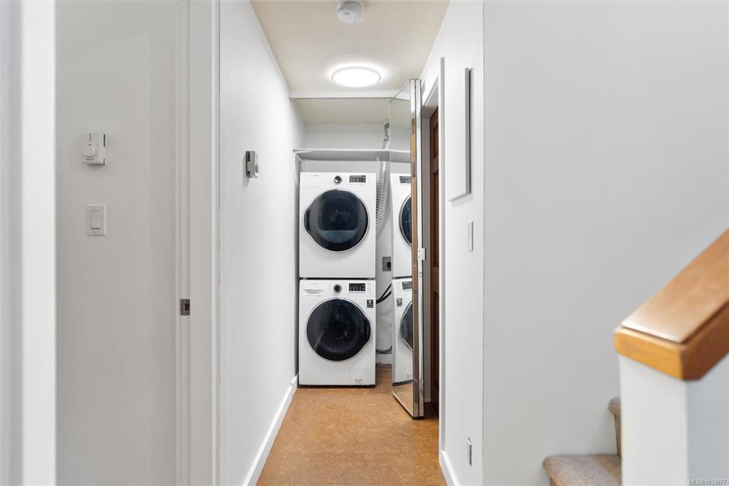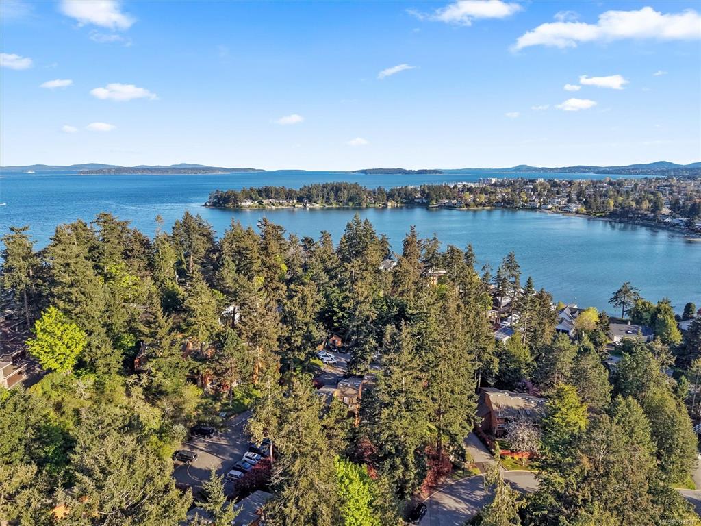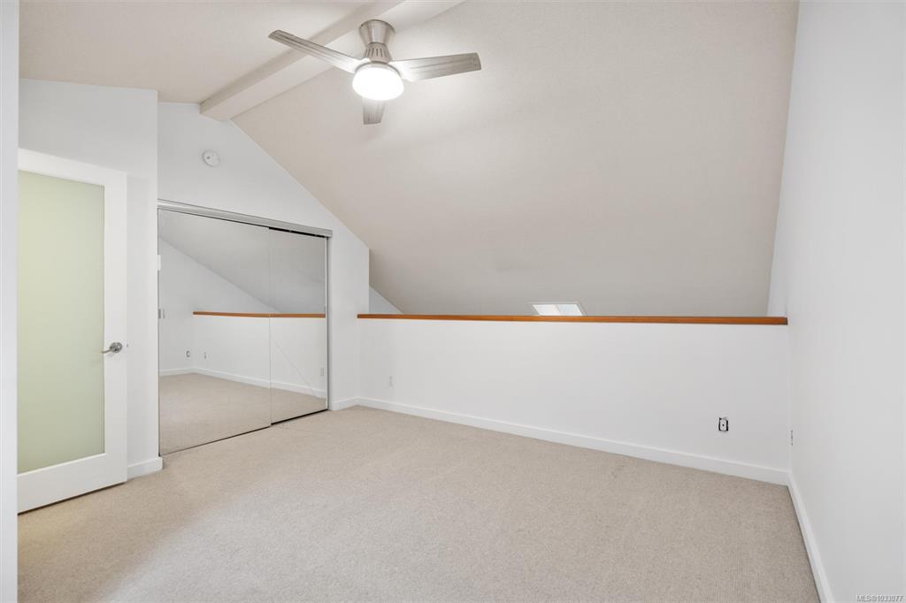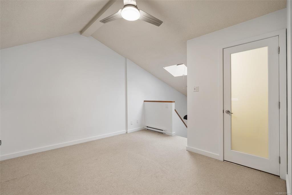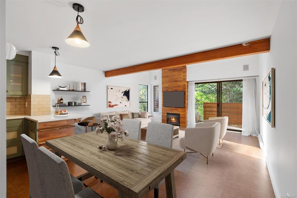 Tucked into a quiet, forested pocket of Sidney just steps from the marina on Harbour Road, this top floor 2 bed/2 bath townhome offers a rare mix of privacy and convenience. At 1,100 sq ft, the layout feels open and airy, with 14-foot ceilings, cork flooring, and an electric fireplace at the heart of the living and dining areas. The in-line kitchen features stainless steel appliances and quartz counters. The main level has a bedroom, 4-piece bath, and laundry. Upstairs is a loft-style primary bedroom with a...