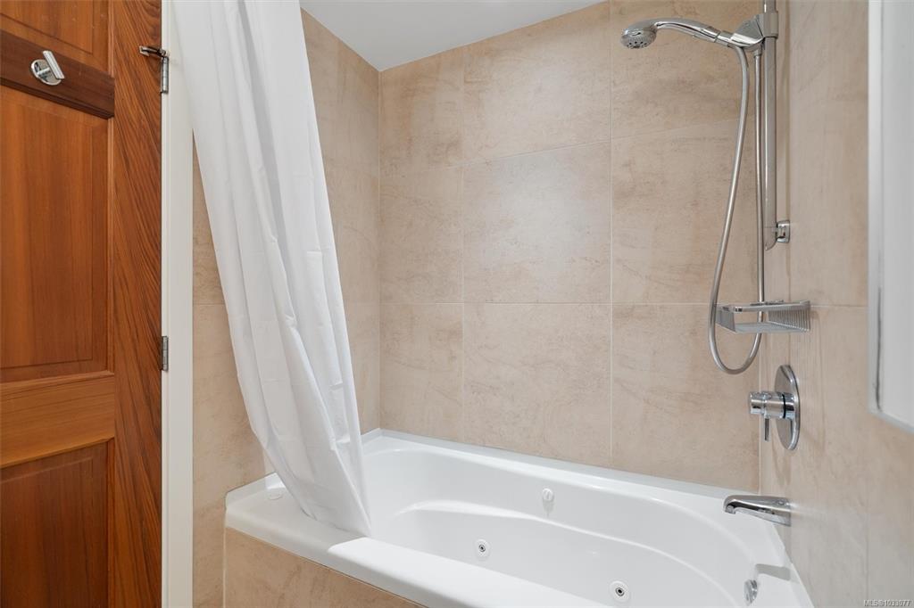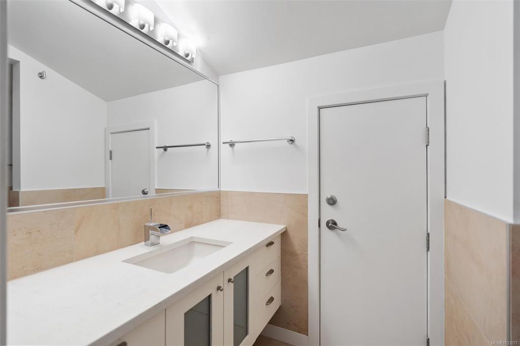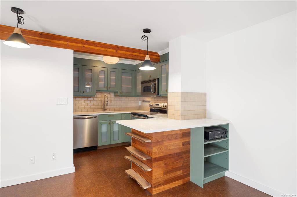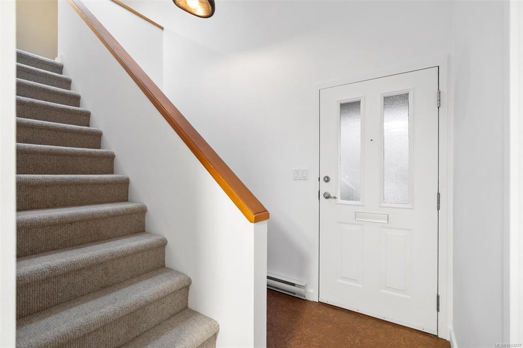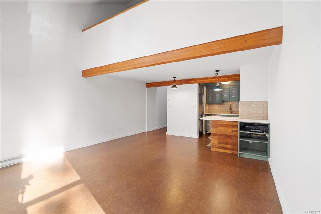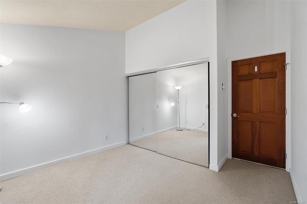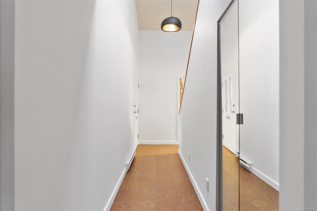 Tucked into a quiet, forested pocket of Sidney just steps from the marina on Harbour Road, this top floor 2 bed/2 bath townhome offers a rare mix of privacy and convenience. At 1,100 sq ft, the layout feels open and airy, with 14-foot ceilings, cork flooring, and an electric fireplace at the heart of the living and dining areas. The in-line kitchen features stainless steel appliances and quartz counters. The main level has a bedroom, 4-piece bath, and laundry. Upstairs is a loft-style primary bedroom with a...