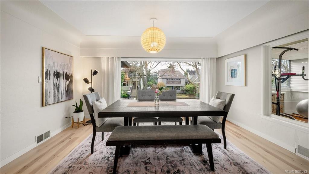 Set back and elevated on a generous 9000 sq ft lot, this updated 1949 residence offers five bedrooms and three bathrooms in a prime Oak Bay location. Significant improvements include a new roof, heat pump w/ AC, full interior and exterior repainting, gutters and downspouts, and all new appliances. Bright interiors are enhanced by large vinyl thermopane windows and updated lighting throughout. The main level features a comfortable living and dining area with oak flooring, a versatile sunroom, a spacious eat ...