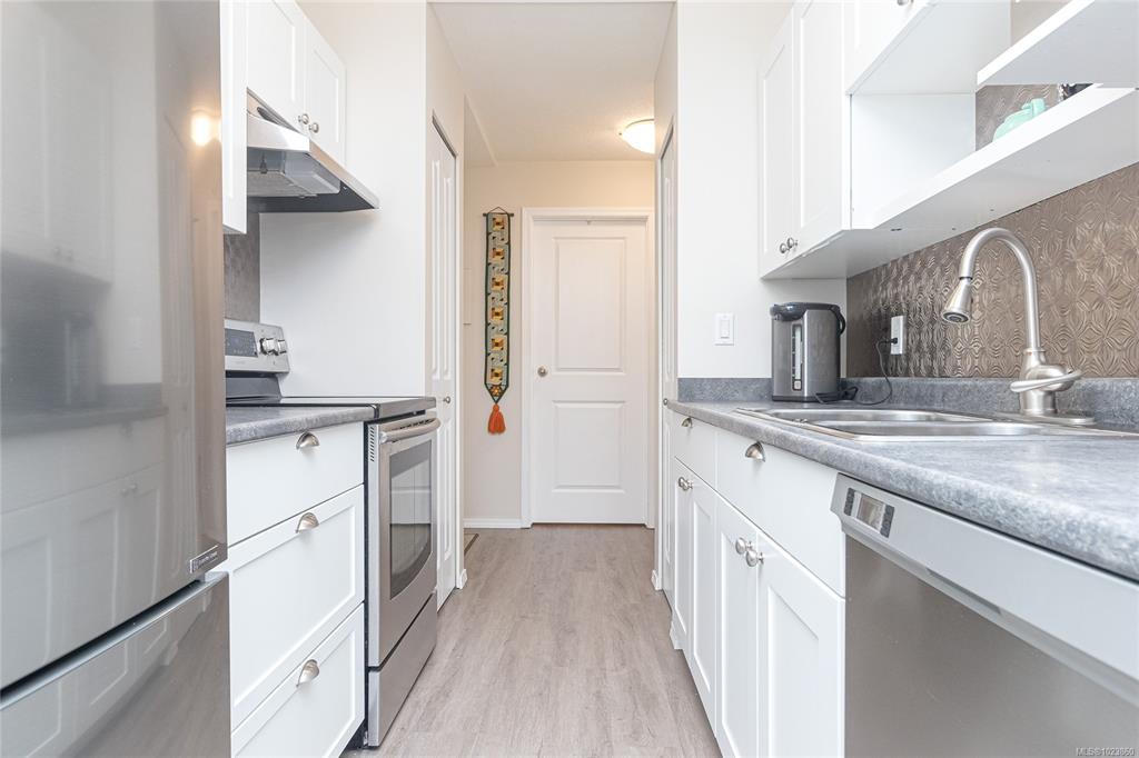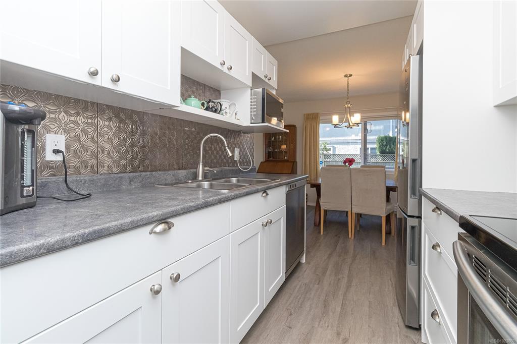 SIDNEY BY THE SEA! Seldom do these homes become available at the desirable CHARTHOUSE. Welcome to this BRIGHT, SOUTHWEST sundrenched CORNER 2 BD/2 BA, 1027sf ground floor condo. Galley style kitchen with white cabinets & double sink, separate dining/eating area, and a spacious living room with electric fireplace feature is perfect for entertaining! Enjoy easy access to your walk-out patio surrounded by the beautiful gardens and lawn – perfect for your small dog too! In-suite NEW washer/dryer and 1 parking s...