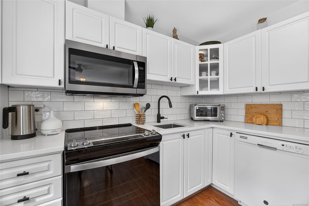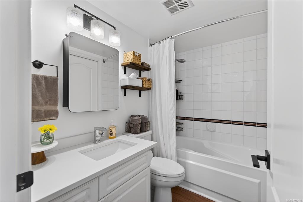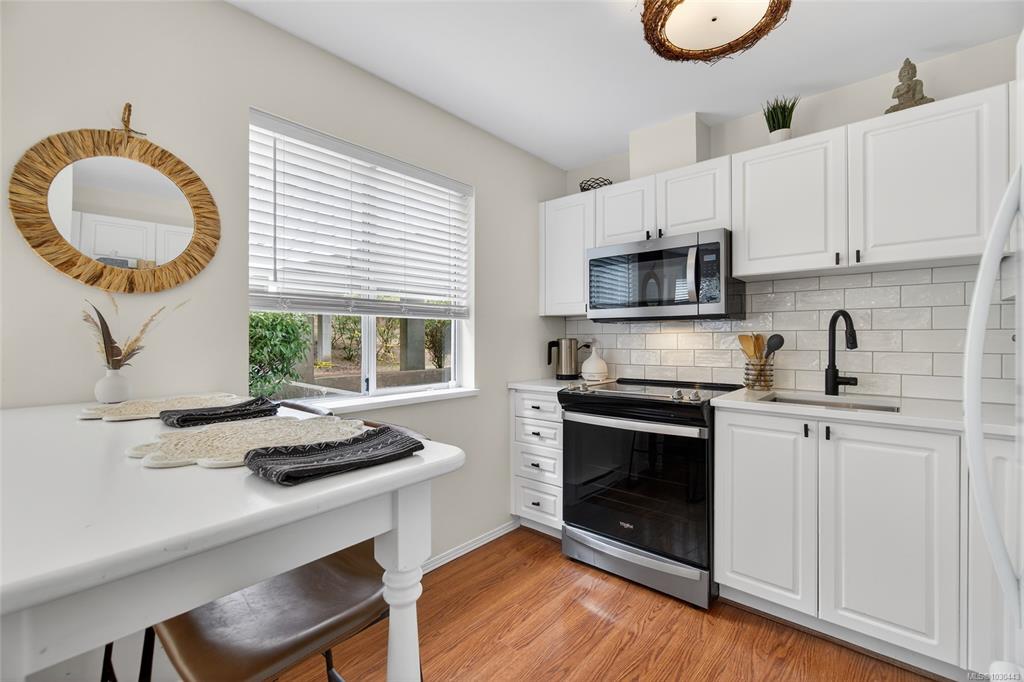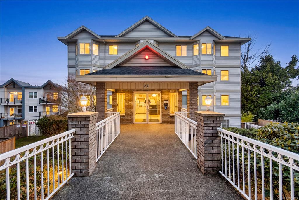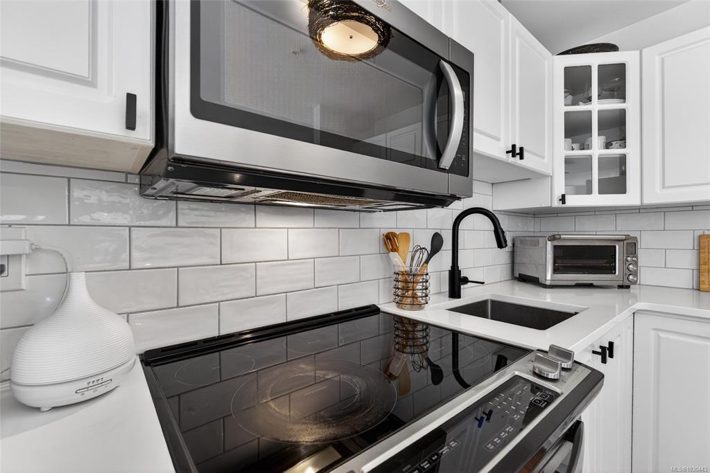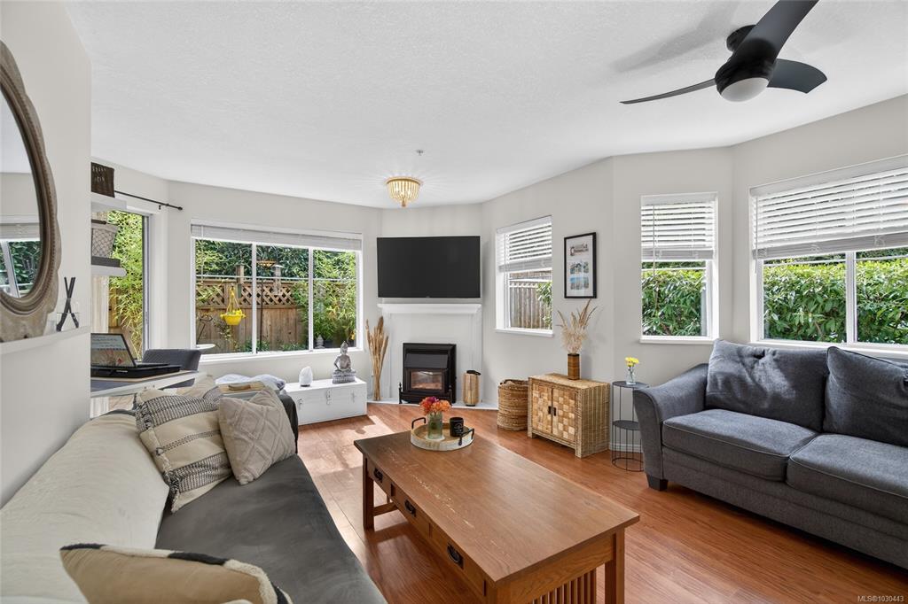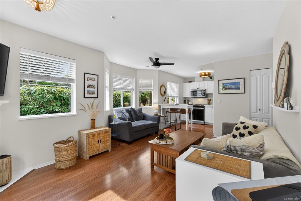 Fashion and function, this is a charmer! If you are looking to get into the market or ready to down size and appreciate style and comfort, this is the right one for you! This very efficient one bedroom condo with a huge and private patio features a cozy gas fireplace that heats the entire home and is included in your strata fee! There is an open concept kitchen, a good sized bedroom and bathroom and one parking and storage locker. In a healthy building that has a 6 year old roof and just finished re-done de...