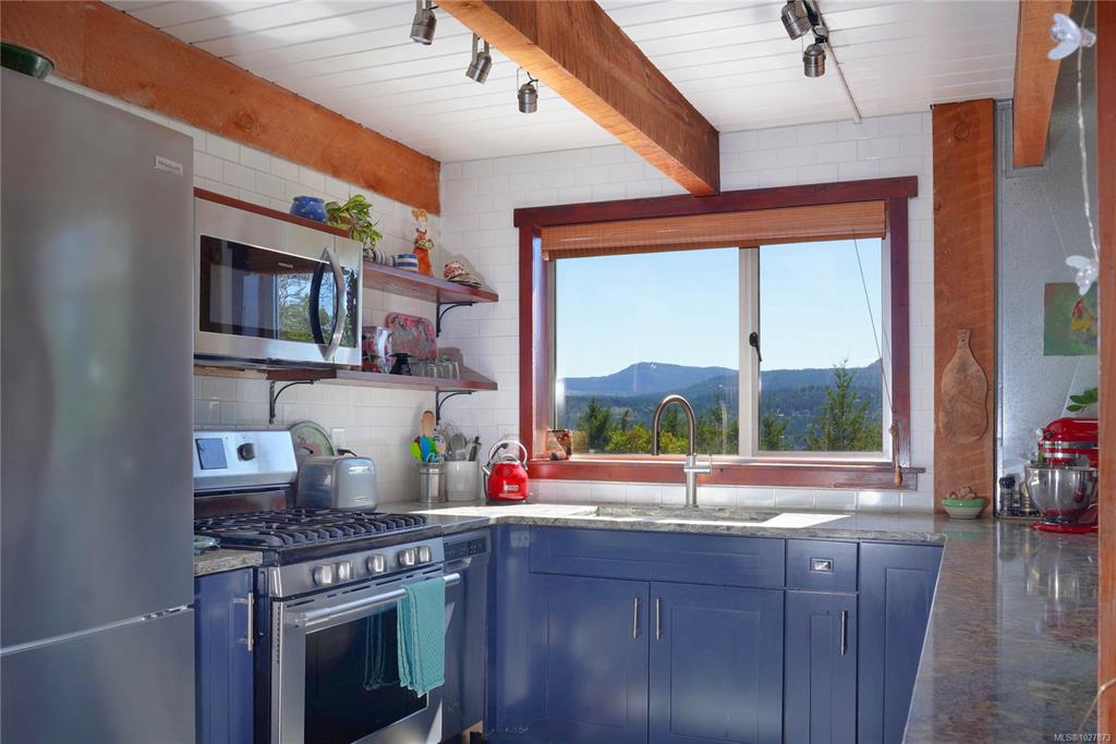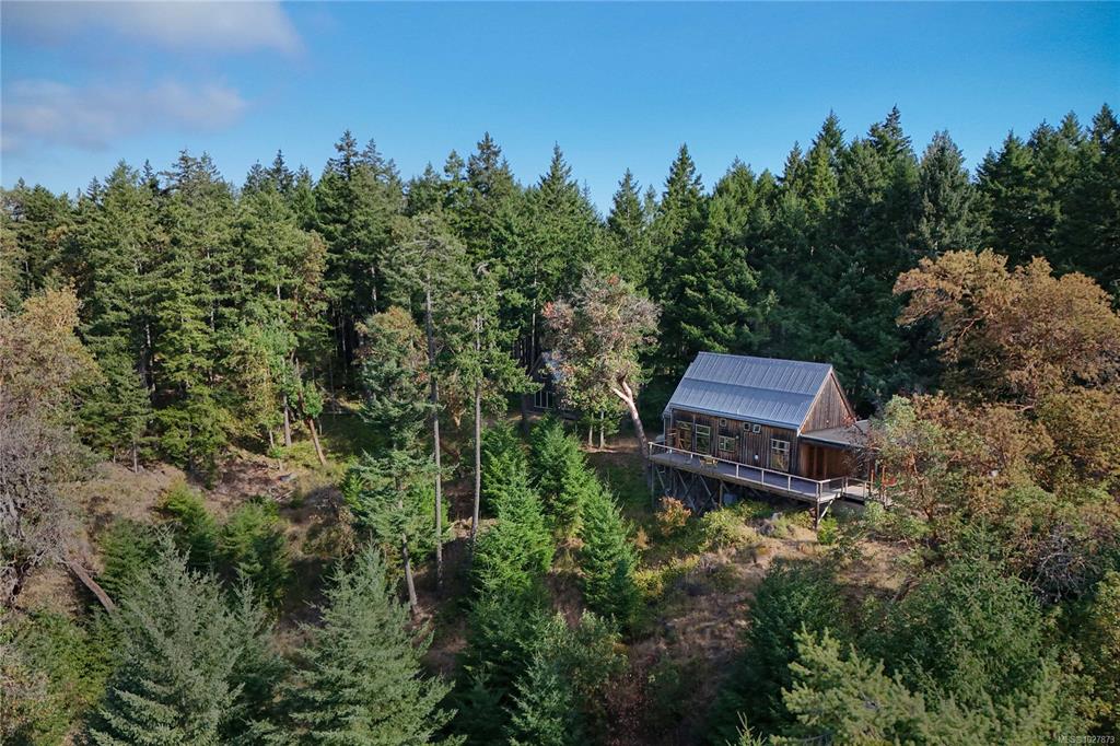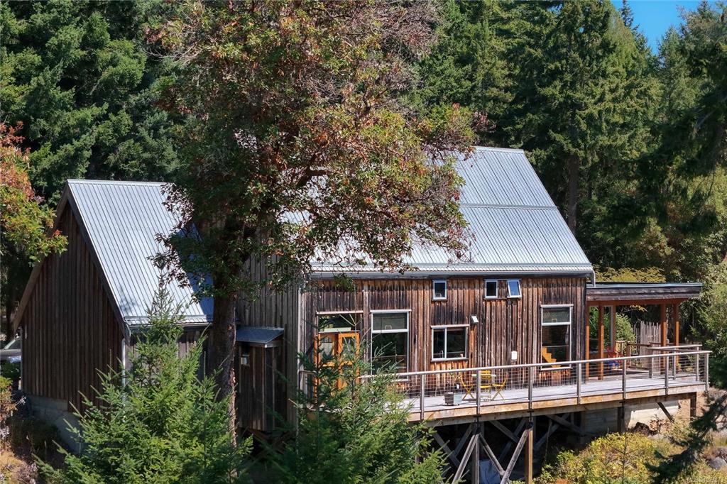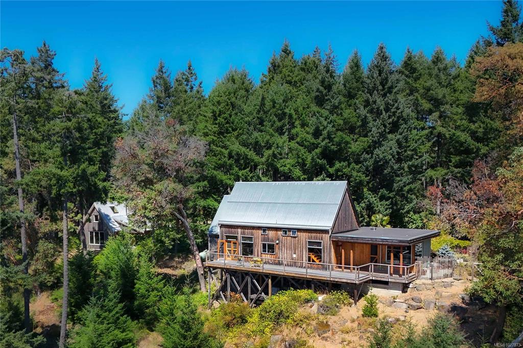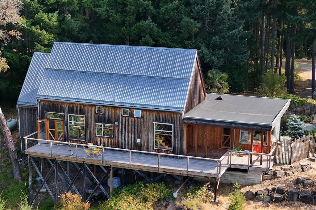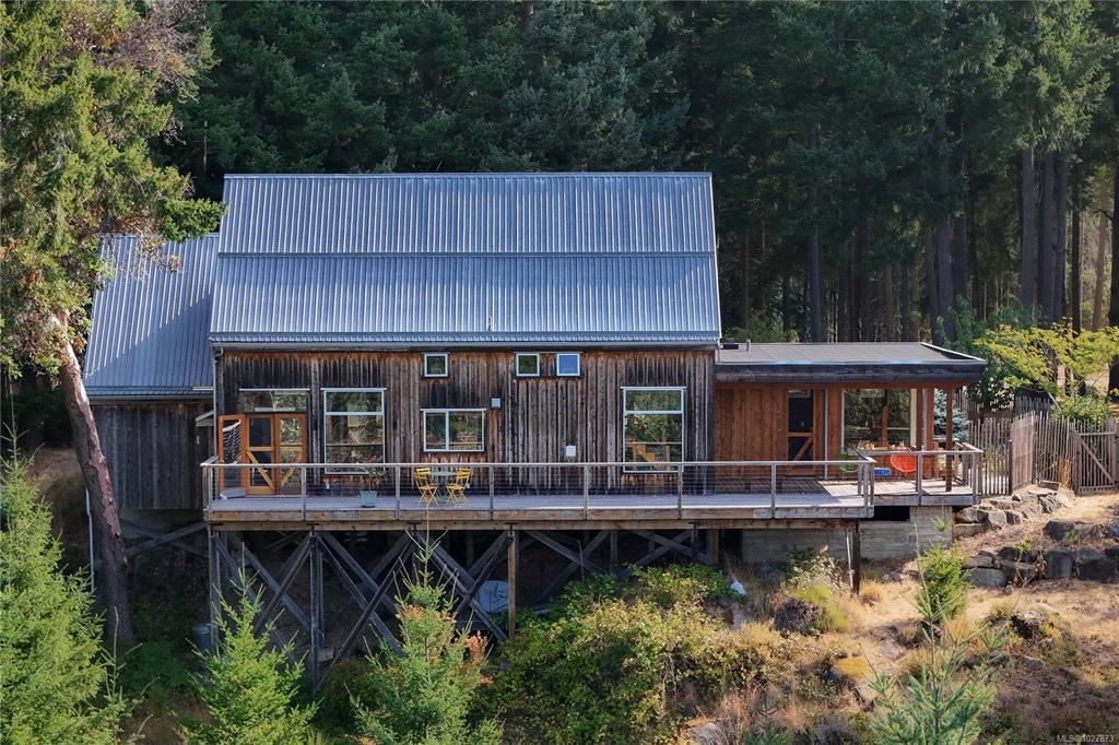 Stylish Salt Spring Sanctuary. Set back on a private 3-acre lot, this designer tree house offers views from every window. An open floor plan with a vaulted cathedral ceiling is further enhanced by unique metal walls and a propane fireplace for chilly nights. Two generous bedrooms at opposite ends of the house, each with access to outdoor space, are complemented by two modern bathrooms. South-facing, an expansive cedar deck wraps around the house, creating a seamless indoor/outdoor living experience. On the ...