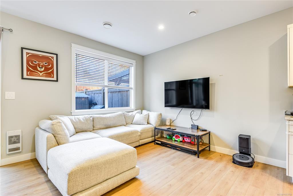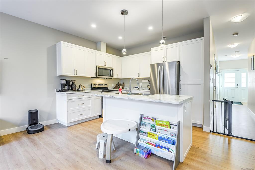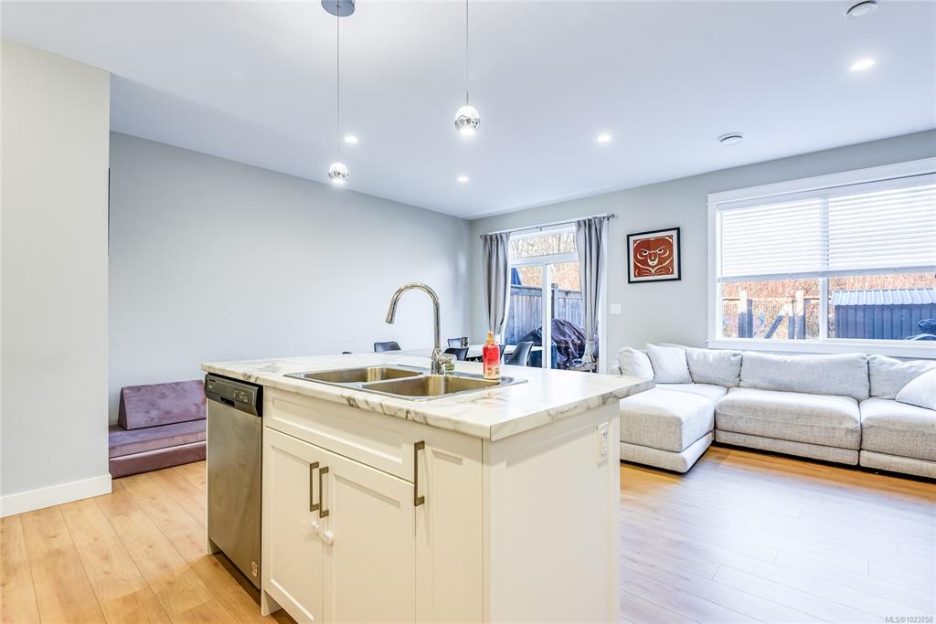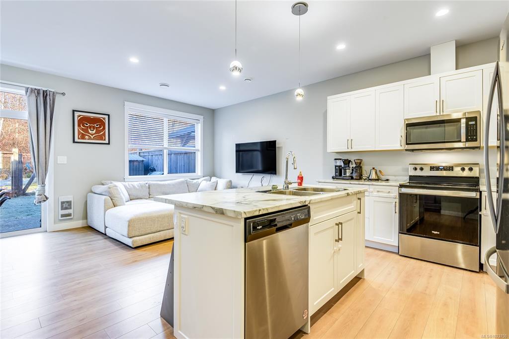 Spacious townhome with an undeveloped treed area in behind! This 5 year old unit is bright with an open concept design. The kitchen has plenty of cupboard space, island with sink - perfect for prepping meals while still being able to keep your eye on little ones. Access your fully fenced in backyard from the dining area. There is a large treed lot in behind which gives these end units a nice private, quiet setting. The garage has been converted into extra living space (was previously used as a music ar...