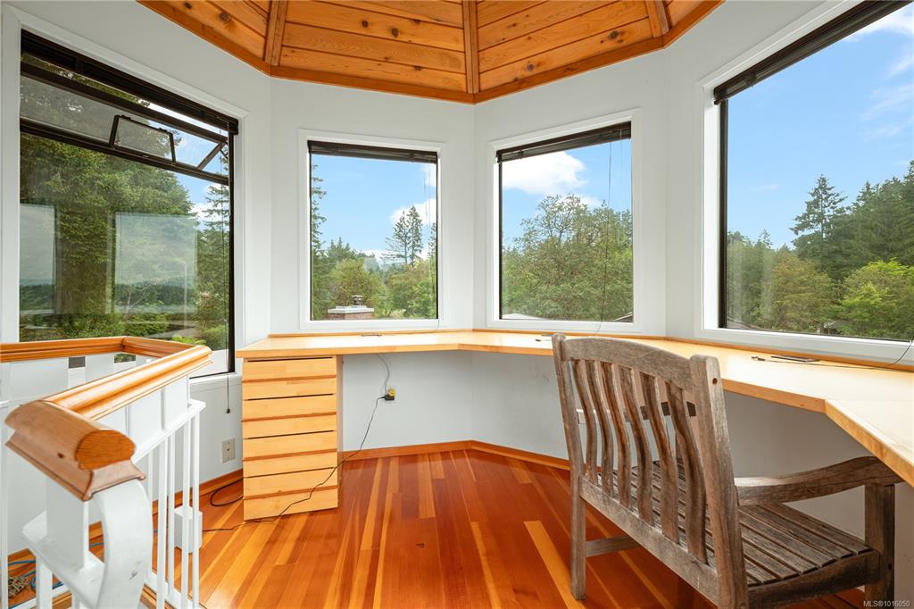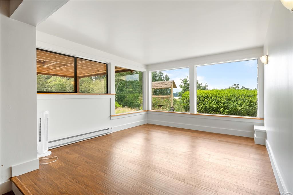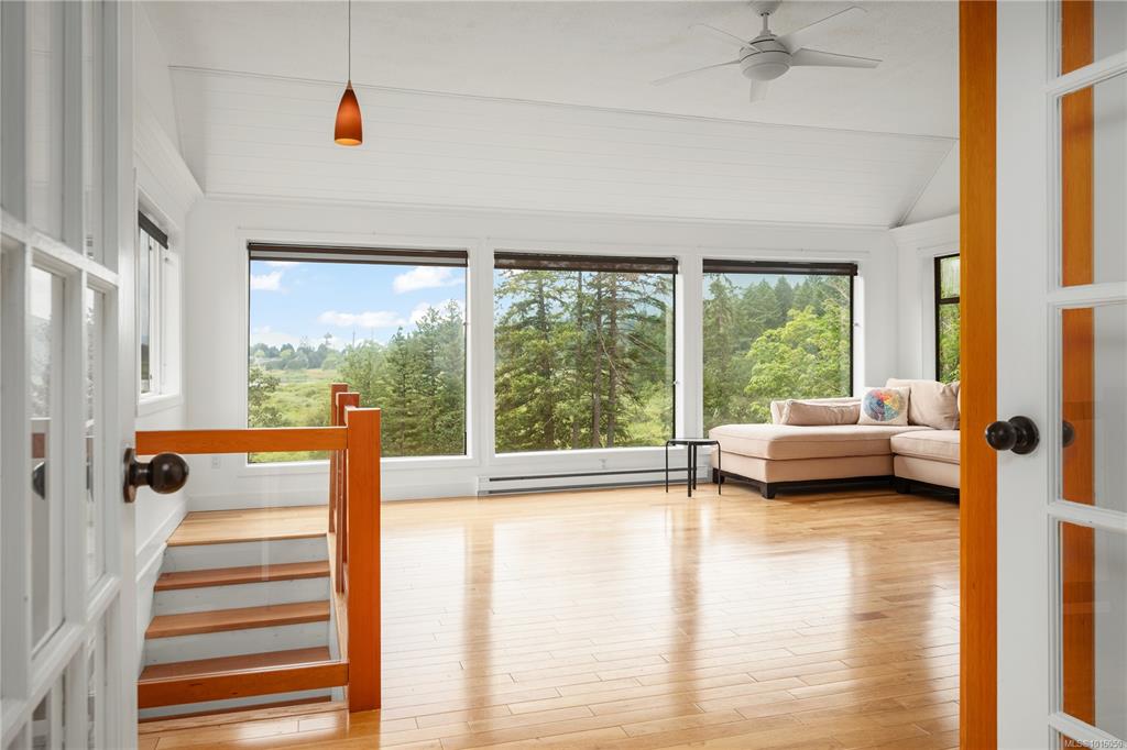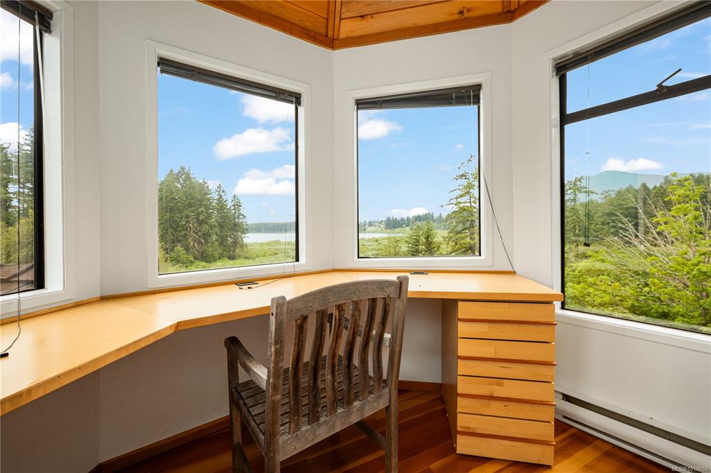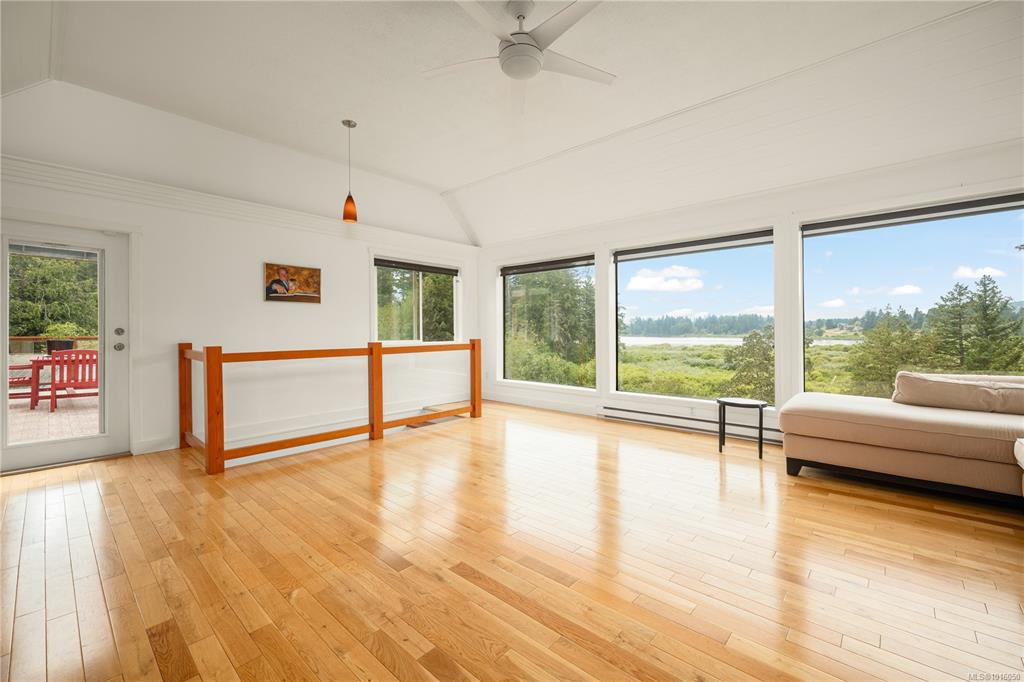 This private 2.16-acre retreat blends West Coast charm w/sweeping, unobstructed views of Somenos Lake. A long gated driveway leads to nearly 4,000sqft of beautifully renovated living space featuring custom woodwork, a gourmet kitchen, and an inviting main living area anchored by a wood-burning stove. A winding staircase leads to a lookout-style office perched above it all—your own secluded workspace w/panoramic lake and valley views. The primary suite offers a WIC, private deck access, and a stunning ensuit...