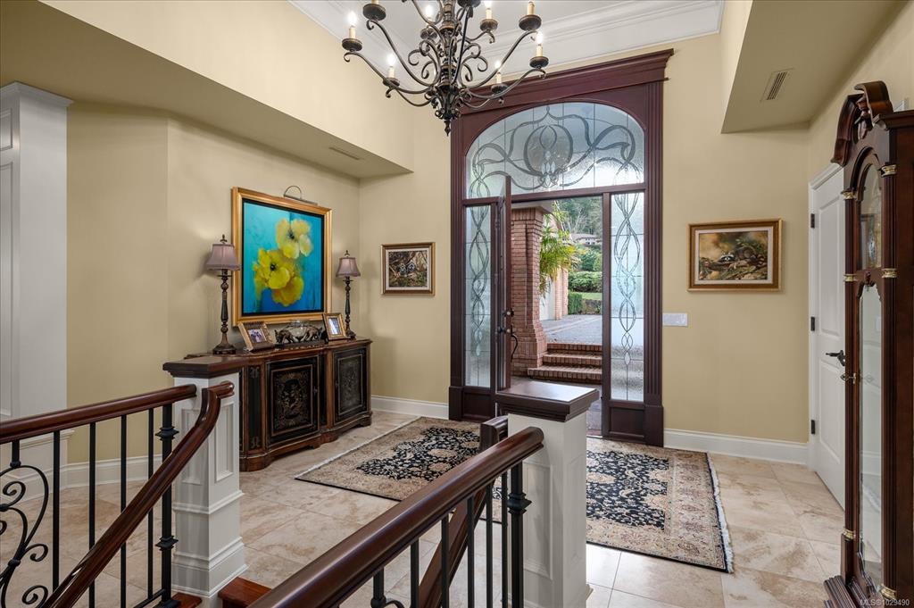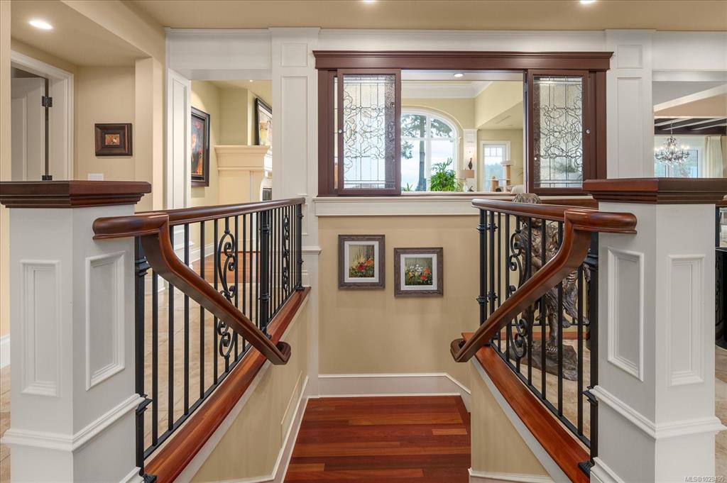 This stunning walk-on WATERFRONT residence in Fairwinds, Nanoose Bay offers luxury, craftsmanship, and sustainable modern living. Spanning 5,590 sqft, this 4-bed, 4-bath executive home sits on a quiet cul-de-sac in a sheltered bay with panoramic views of Southey and Winchelsea Islands across the Strait of Georgia. A grand foyer opens to light-filled living spaces with ocean views, gas fireplaces, and folding glass doors to a spacious deck. The chef’s kitchen features an abundance of custom wood cabinetry, p...