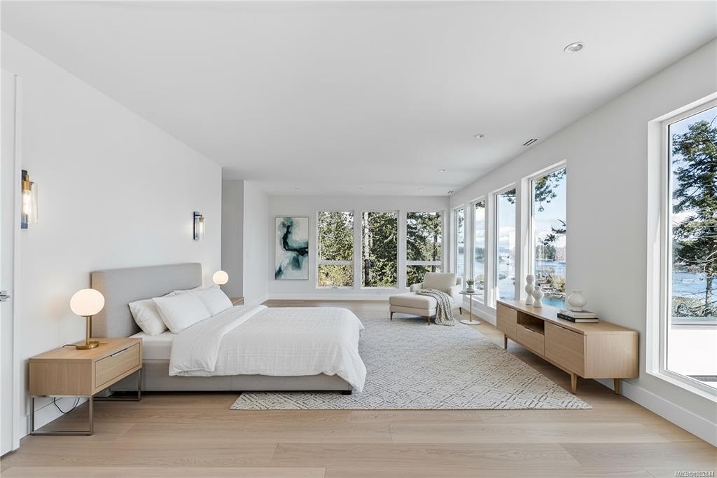This stunning oceanfront, custom designed estate embodies West Coast style and architecture. With an open floor plan and soaring ceilings, the interior exudes sophistication. The home offers 4 bedrooms, and 5 bathrooms crafted to highlight sweeping views of the ocean, mountains and islands. The chef's kitchen is equipped with custom cabinets, a full pantry, stone counters and a spacious island. A formal dining room, complete with a double-sided statement fireplace, flows into the expansive living area where...