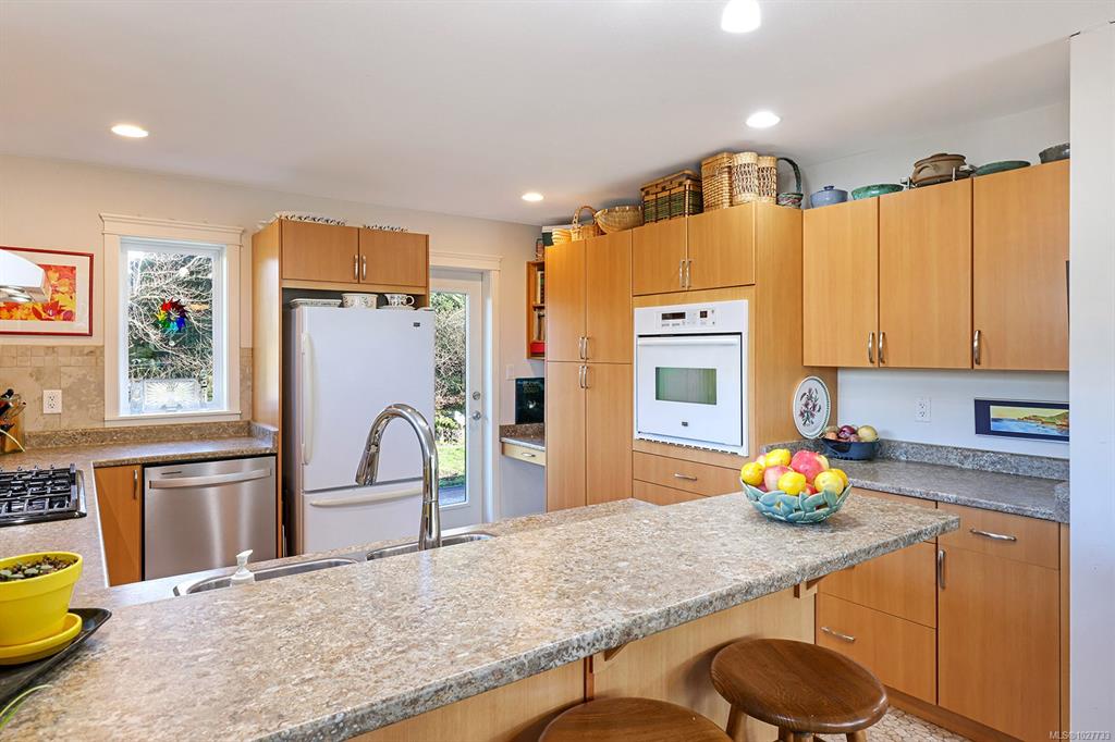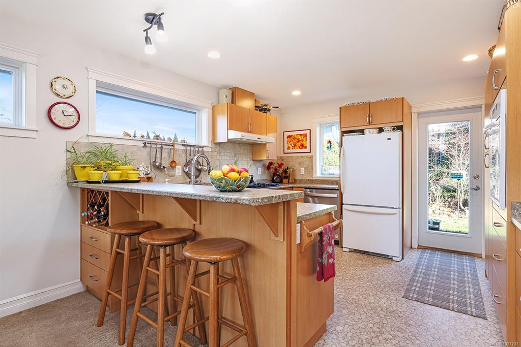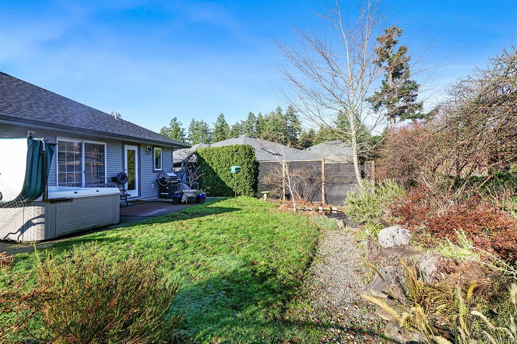 Desirable Lancaster Estates in Comox. This home has been well-cared-for and features a legal self contained 1-bedroom suite with separate access, parking, and patio. Upstairs offers three bedrooms and two bathrooms, views of the Beaufort Mountains, and access to a rear patio with a private fenced backyard featuring several fruit trees, perennial beds, and a hot tub. Close to amenities and a great trail system, and only a short walk to Aspen Elementary makes the location ideal. The home is economical to run ...