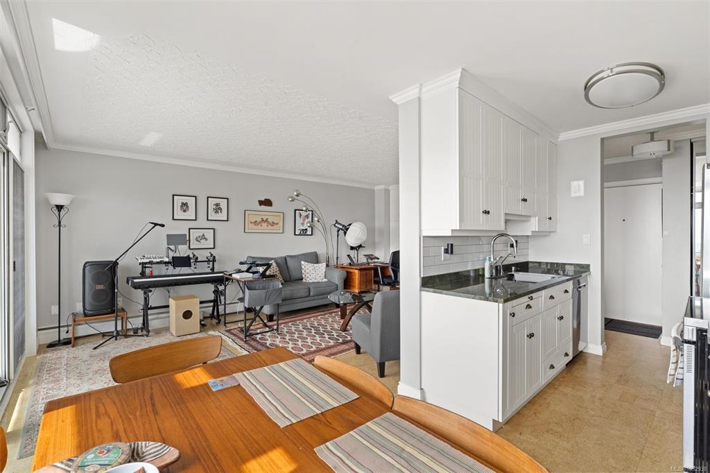 Perfectly positioned across from Beacon Hill Park, welcome to Bickerton Court—one of James Bay’s most desirable steel & concrete buildings. This bright & spacious south-facing 1 bed/1 bath suite offers a larger-than-average floorplan, abundant natural light, & beautiful water views to the Strait of Juan de Fuca & the Olympic Mountains beyond. Thoughtfully designed with beautiful cork flooring, custom built-in cabinetry, and an open-concept layout. Just 2 blocks from the beloved Beacon Drive In & a short str...