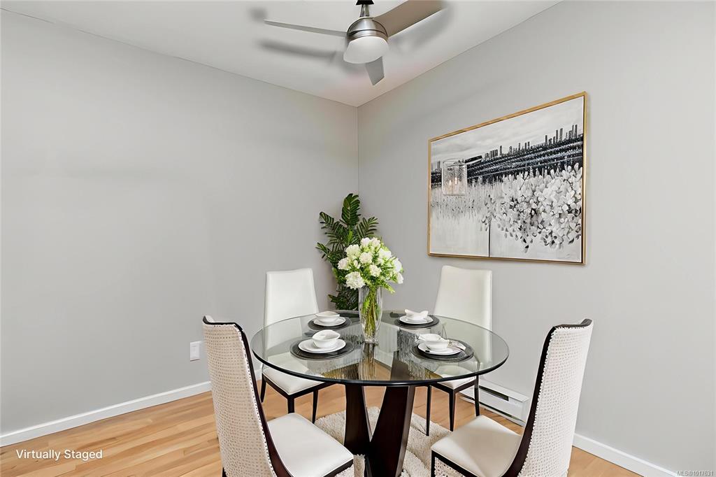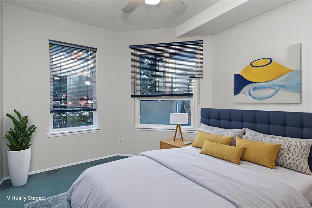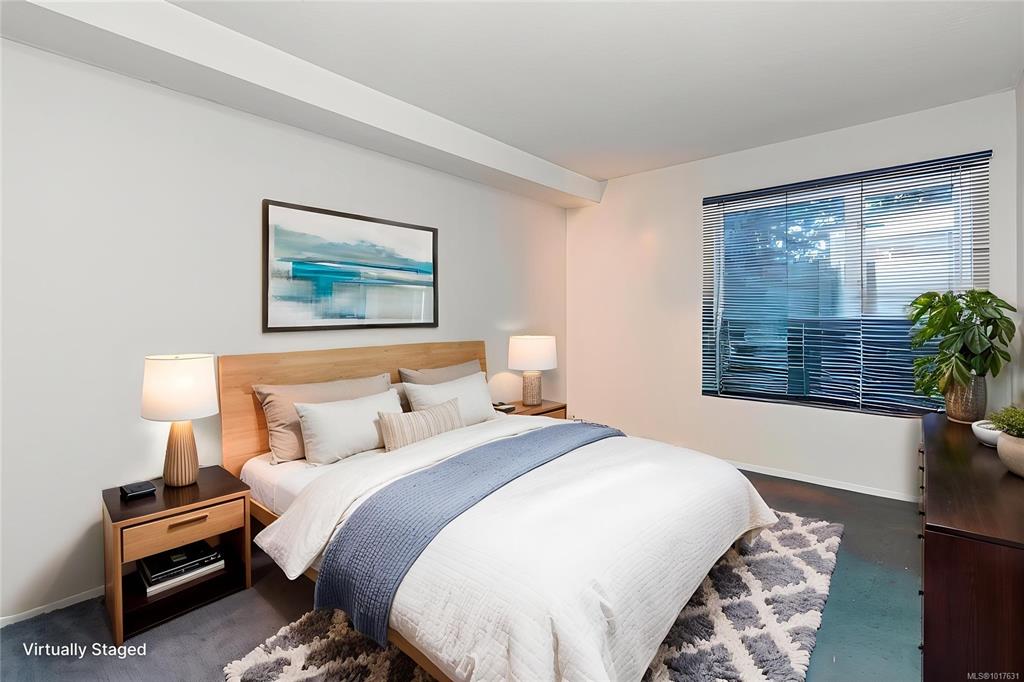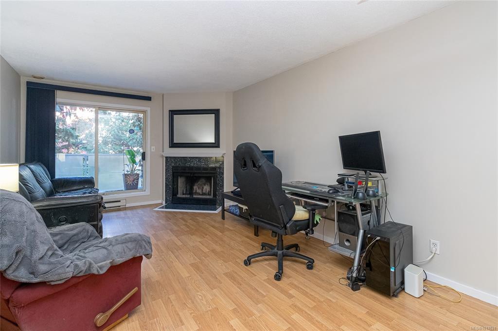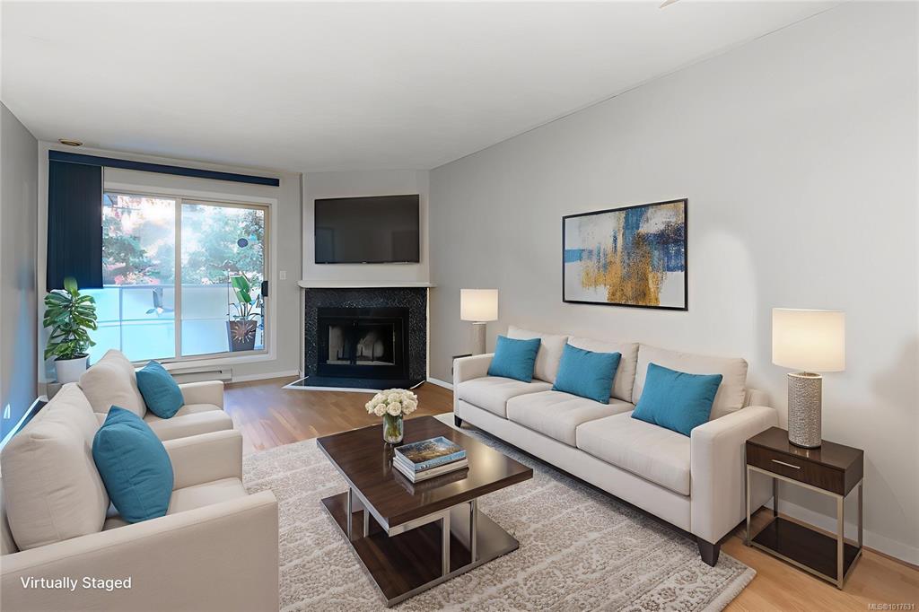 Just steps from Quadra Village and minutes to downtown, this 2-bedroom, 2-bath condo offers a unique layout in a peaceful, tucked-away setting. Located on the quiet backside of a well-maintained building, it overlooks mature trees—providing a sense of privacy and calm rarely found so close to the city. Inside, the living space is warm and welcoming, featuring a cozy wood-burning fireplace that adds both character and comfort—perfect for quiet evenings at home. Enjoy the convenience of in-suite laundry, sec...