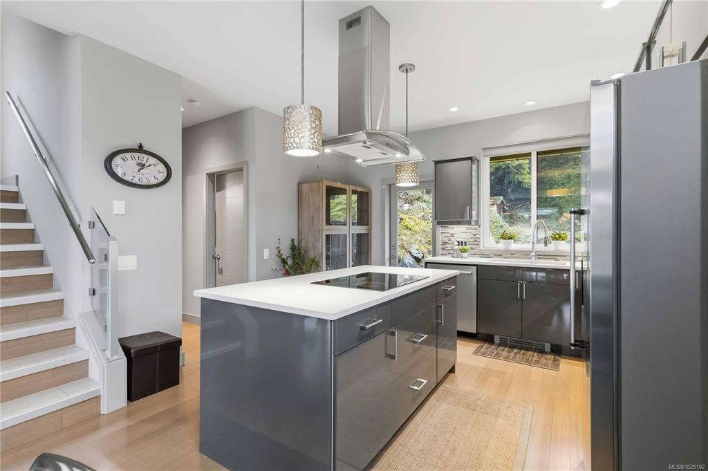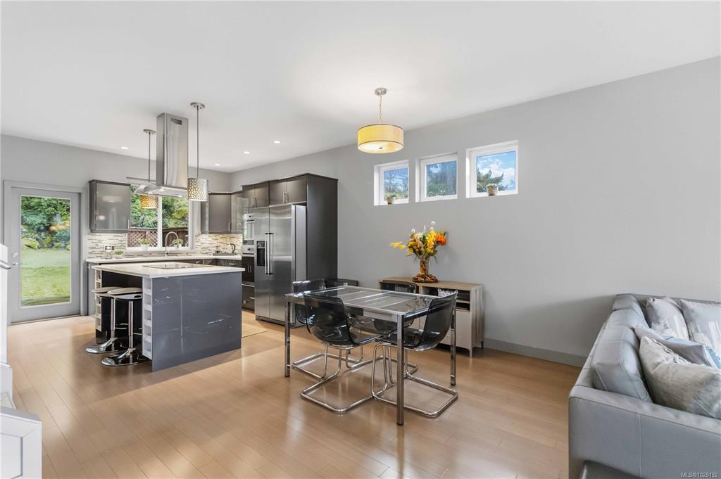 This custom-built modern home sits on a spacious, usable lot in a sought-after Langford neighbourhood, blending clean design with everyday functionality. The striking exterior features a generous west-facing deck and double garage, while the fenced, private backyard offers excellent sun exposure and space for kids to play—easily visible from the kitchen or office. Inside, the bright main level showcases an open-concept layout ideal for entertaining, with patios off both the kitchen and living room plus a ve...