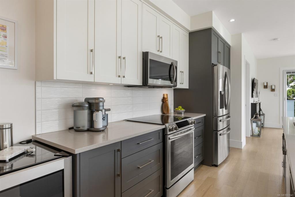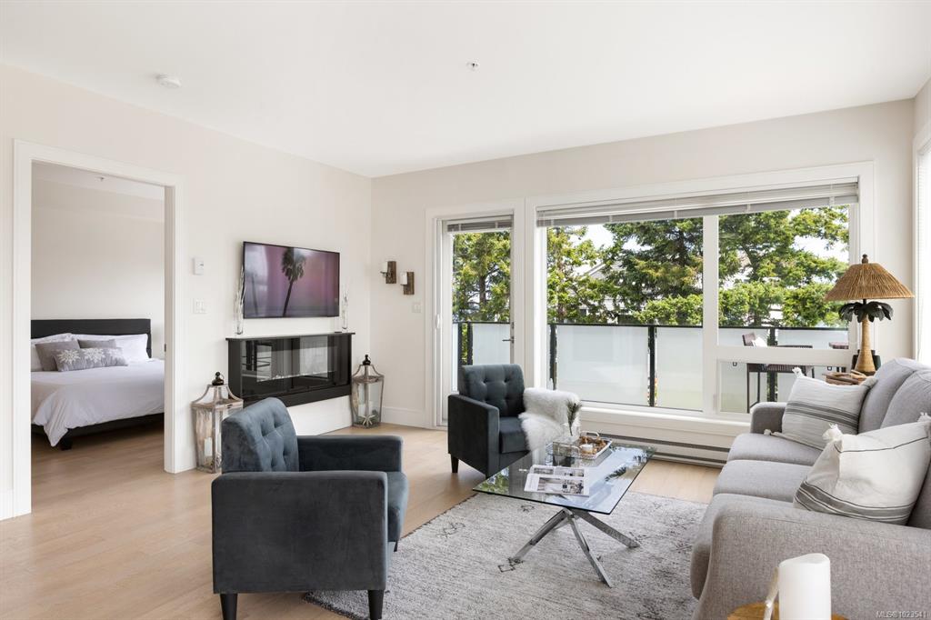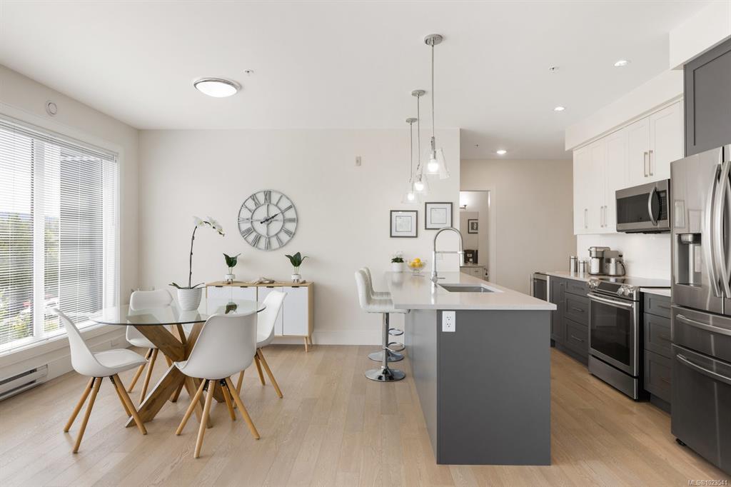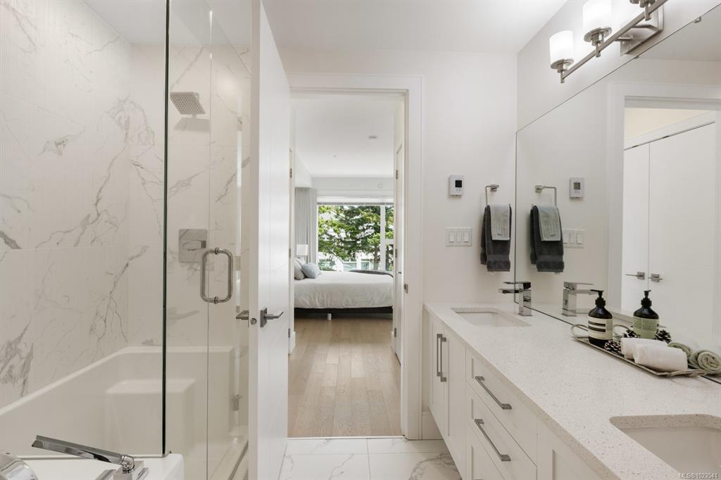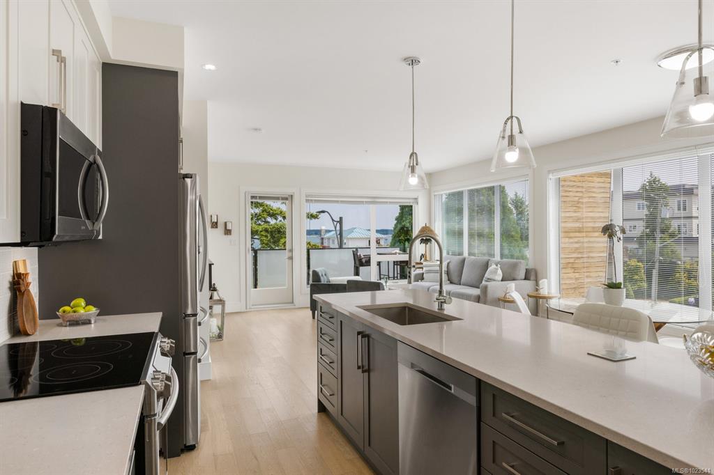 Experience the best of seaside living in this elegant 2-bed, 2-bath condo in vibrant downtown Sidney. Beautifully appointed, the condo offers ocean views. Inside, you'll find high-end finishes, oversized windows, and a chef-inspired kitchen featuring stainless steel appliances, a quartz island, and abundant storage. The open-concept layout is ideal for entertaining, with seamless flow between the kitchen, dining, and living spaces. The spacious primary bedroom includes a walk-through closet and a luxurious ...