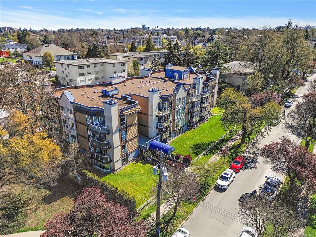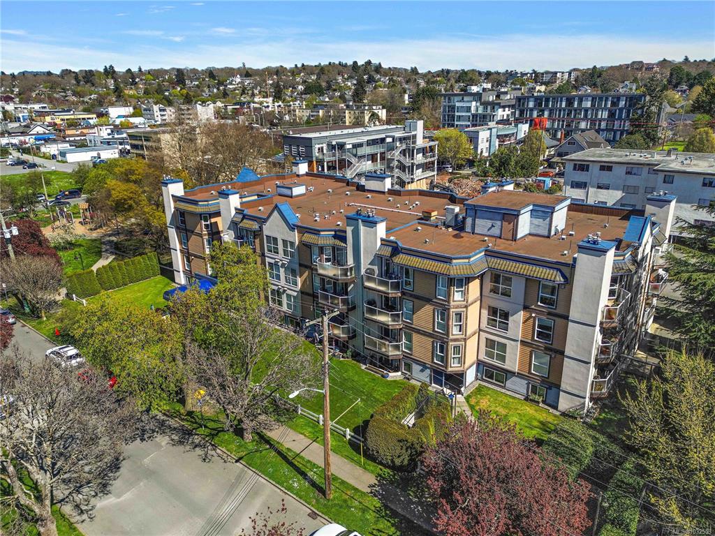 Quiet, bright, and private top-floor corner suite nested into Quadra Village. Built in 1992 and fully remediated in 2005. This suite offers updated kitchen and bathroom with stainless steel appliances and full size in-suite washer and dryer. The unit comes with a separate storage locker a secure underground parking space and the strata fee includes natural gas and hot water. In addition, this building is pet friendly including allowing one dog of unrestricted size. Great location only steps away from all am...