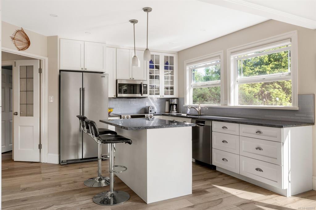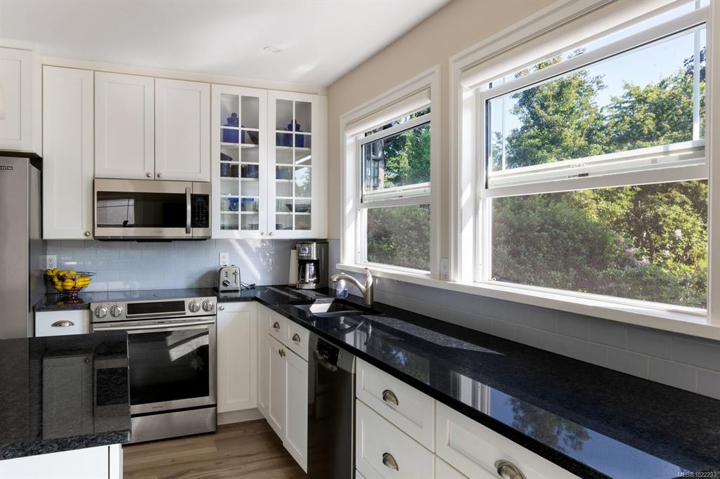 Just steps to Willows Elementary, 1 block from Willows Beach & a short stroll to Oak Bay Village + top neighbourhood schools, this bright, beautifully updated 4–5 bed character home rests on a large tree-lined 70x125 ft lot. The main level offers a generous living room & thoughtfully redesigned kitchen & dining area opening to a sun-drenched south-facing deck. The private backyard, framed by mature trees & lush landscaping, is complemented by a workshop-fully insulated & heated for year-round use, ideal for...
