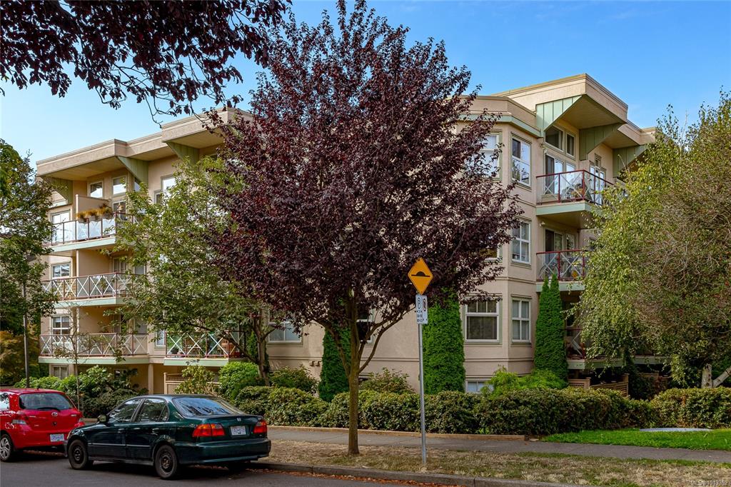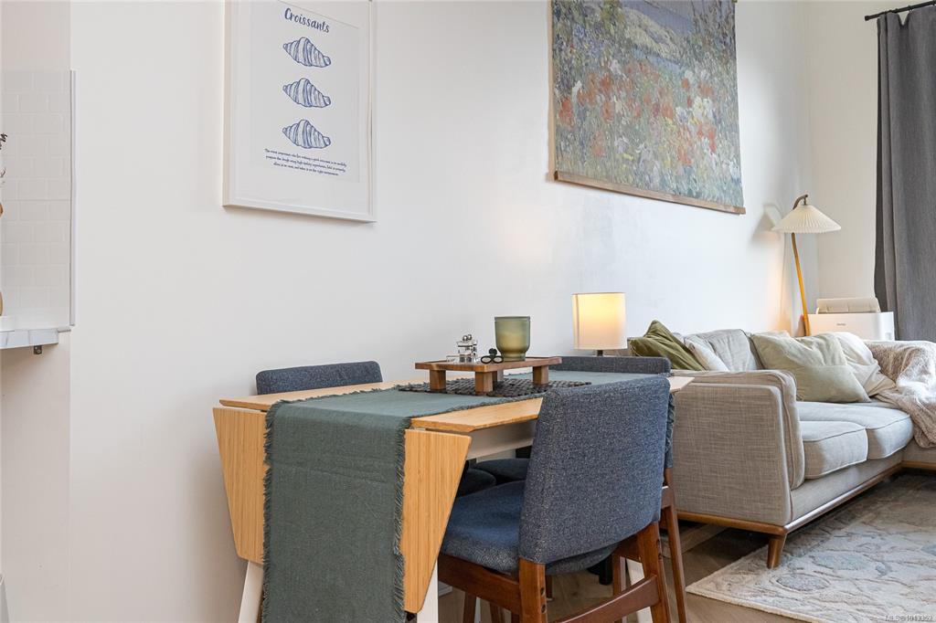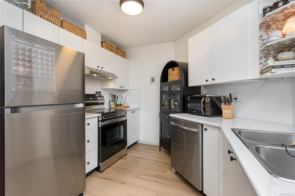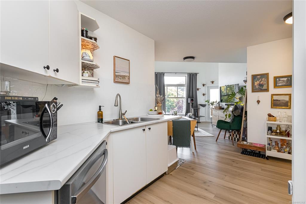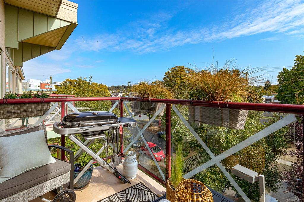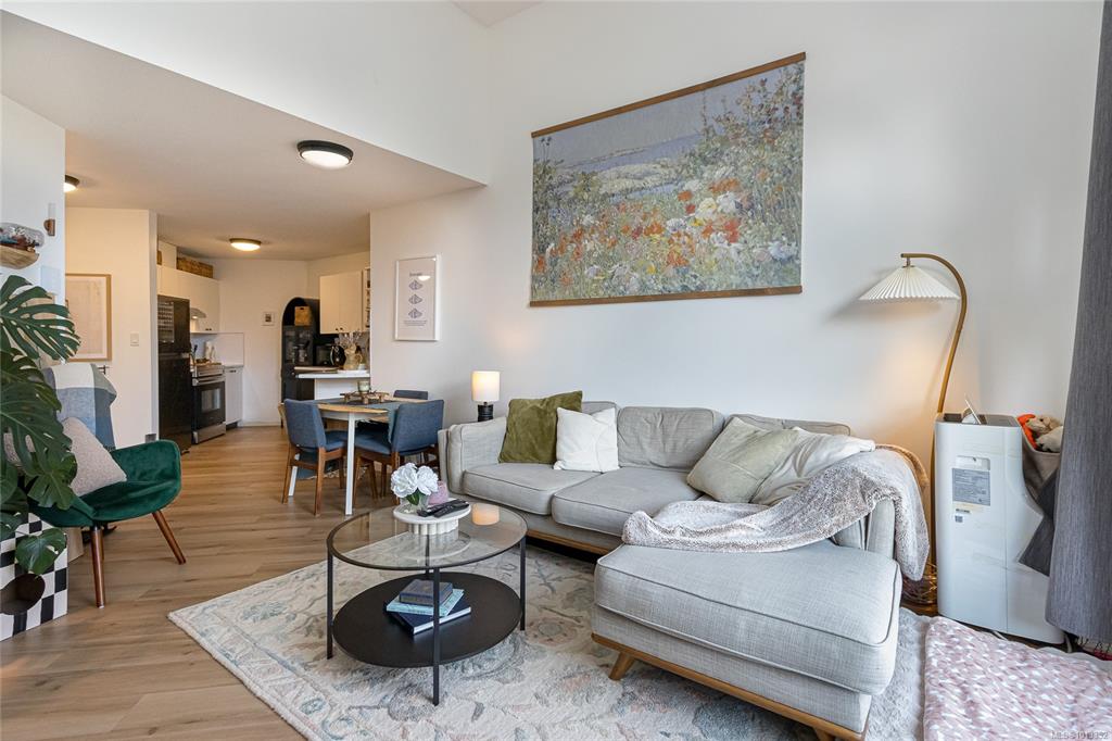 Nestled at the top of a well-run building, this light-filled newly updated condo offers the best of easy urban living. The vaulted ceilings and open-plan design give the home a spacious feel, while the oversized windows frame views of the treetops and nearby park. Just around the corner, Quadra Village offers groceries, dining, cafés, shops, theatre, and green spaces - everything you need at your doorstep. A private balcony provides a quiet outdoor escape, with secure parking and flexible bylaws allowing pe...