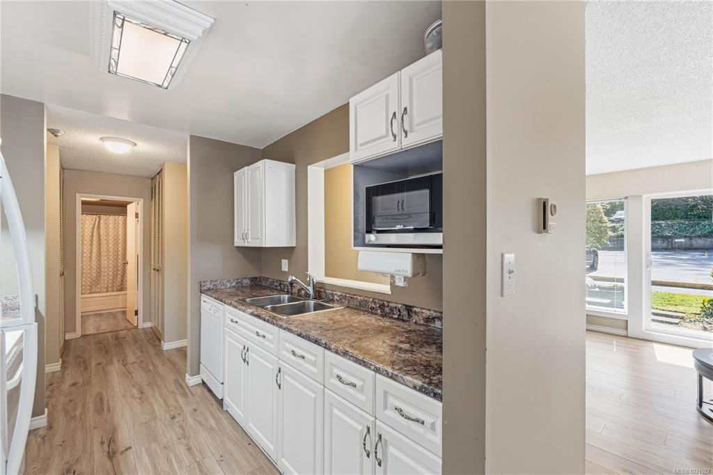 Welcome to Seascape Manor in Departure Bay, one of Nanaimo's most sought-after addresses! This bright and inviting 978 sq ft ground-floor corner unit offers 2 bedrooms, a well-appointed kitchen, and a full 4-piece bathroom. South and west-facing windows fill the condo with natural light. The primary bedroom features a walk-through closet with built-in organizers that leads directly to the bathroom. A decorative fireplace adds character to the living space. Step directly from the living room onto a patio sur...