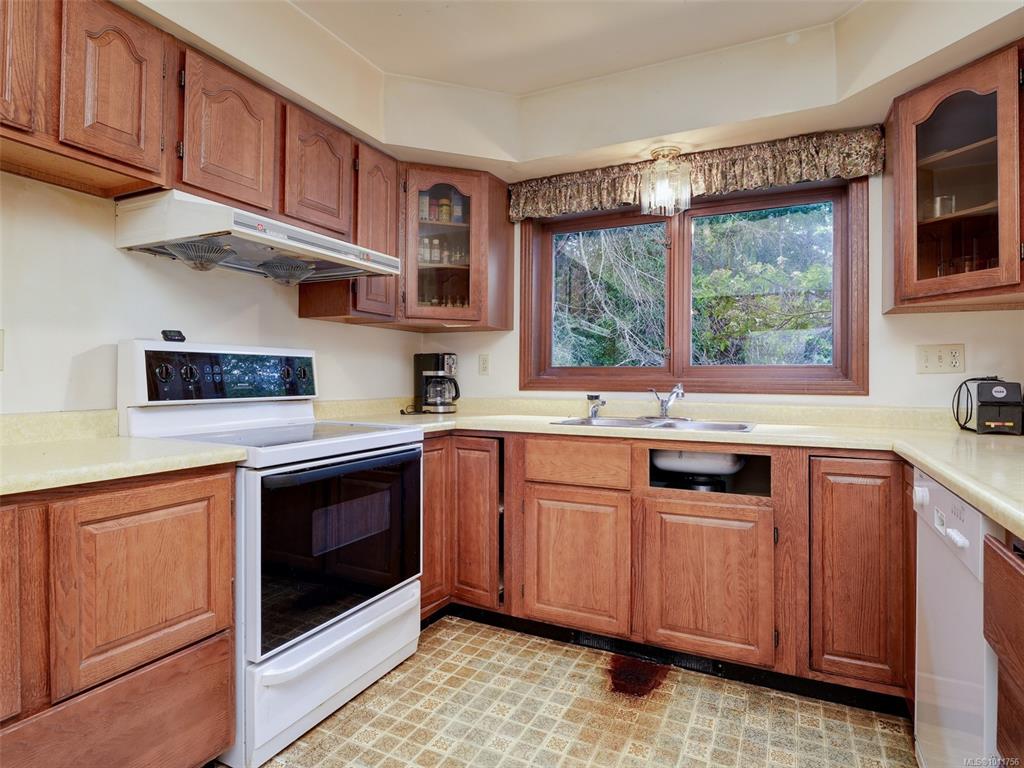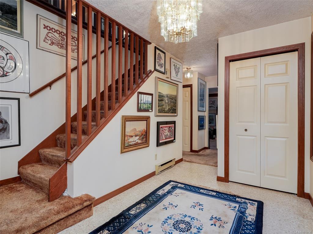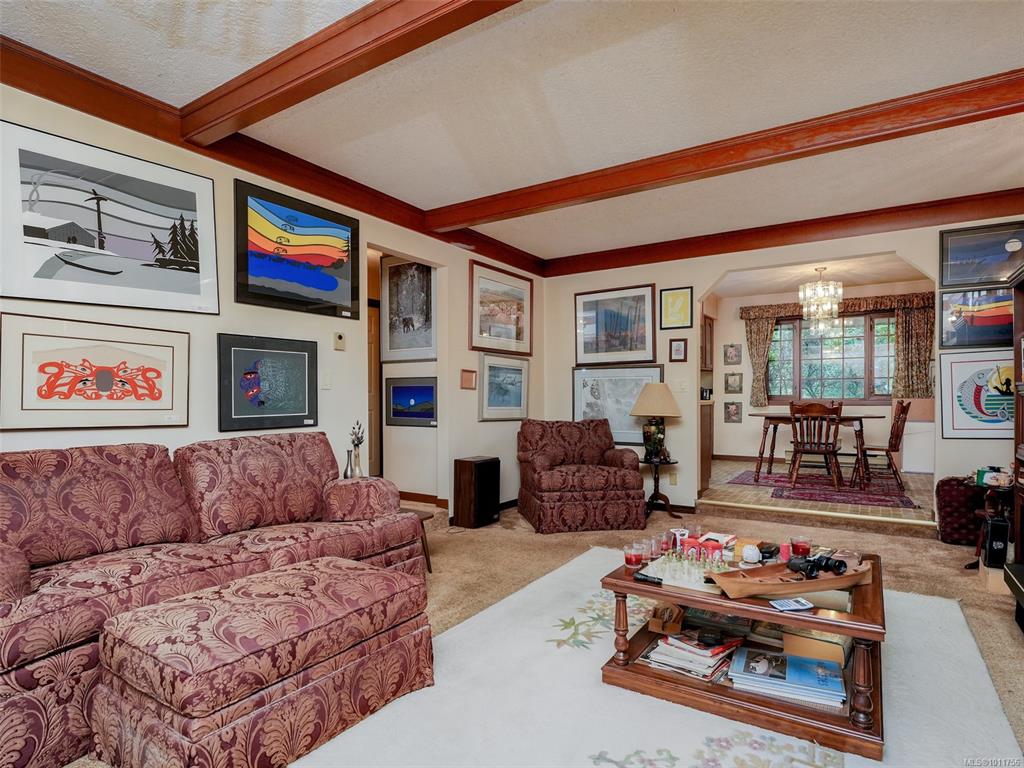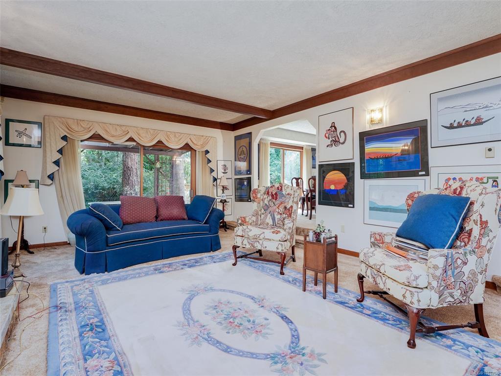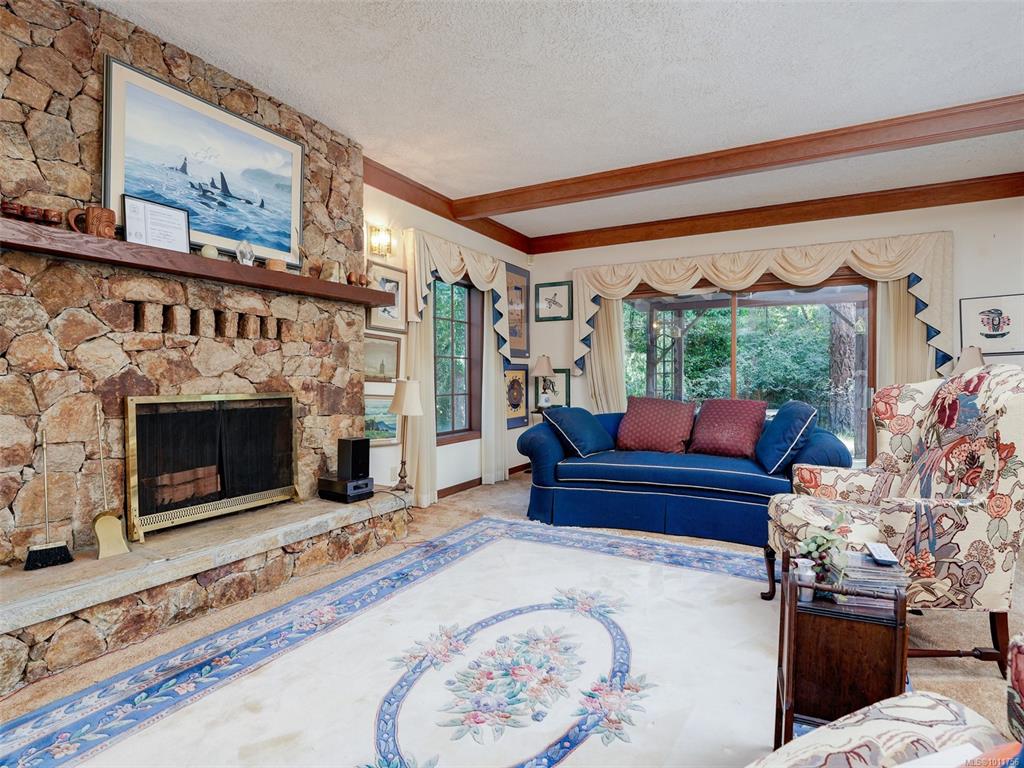 QUEENSWOOD HOME CLOSE TO UVIC. Large family home situated in a private setting is awaiting your decorating ideas. With over 3400 sq ft this expansive 4 bedroom, 3 bedroom home has all the space a growing family needs. The main floor has an entertainment size sunken living room with a featured stone fireplace and patio door that open to the back yard. Step up to the formal dining room with large patio doors, the country kitchen has a cozy eating nook adjacent to the spacious family room with a brick fireplac...