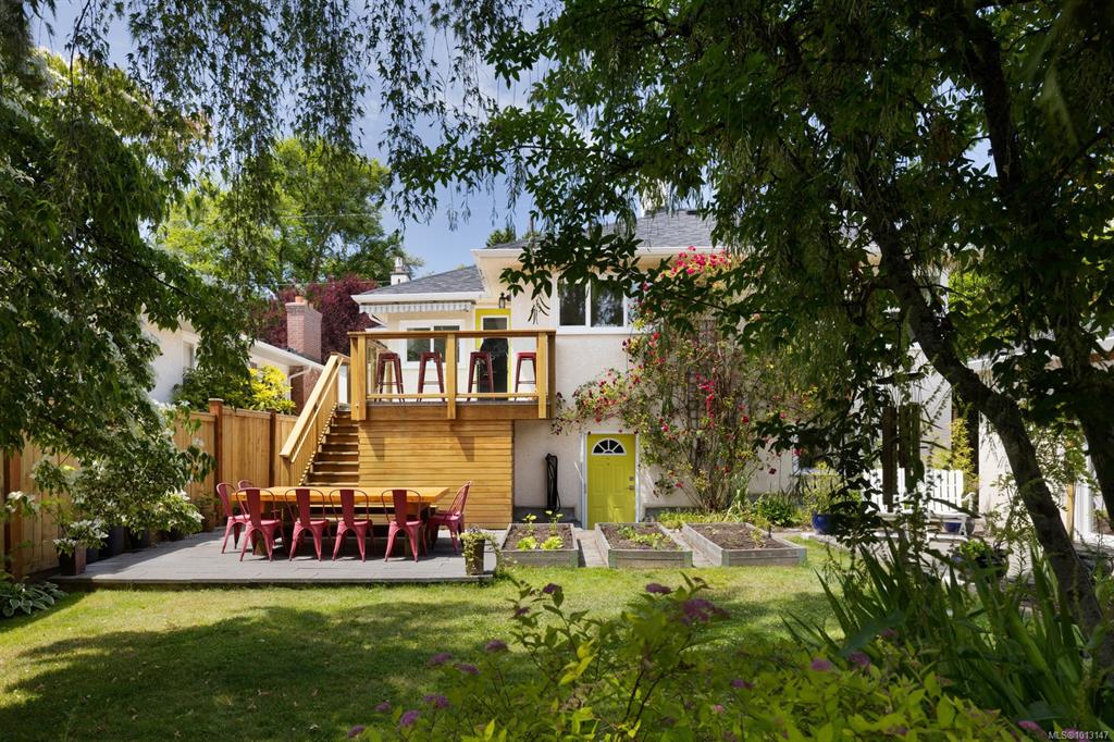 Discover a rare opportunity in the heart of Oak Bay’s coveted Estevan Village. Just steps from the sandy shores of Willows Beach, this 4/5-bedroom, 2-bath residence blends timeless character with modern updates designed for today’s lifestyle. A beautifully landscaped lot with laneway access & a detached garage frames the home, while inside a bright, functional floor plan offers comfort & versatility. The full-height basement presents endless potential for added living space, a suite, or recreation. Outdoors...